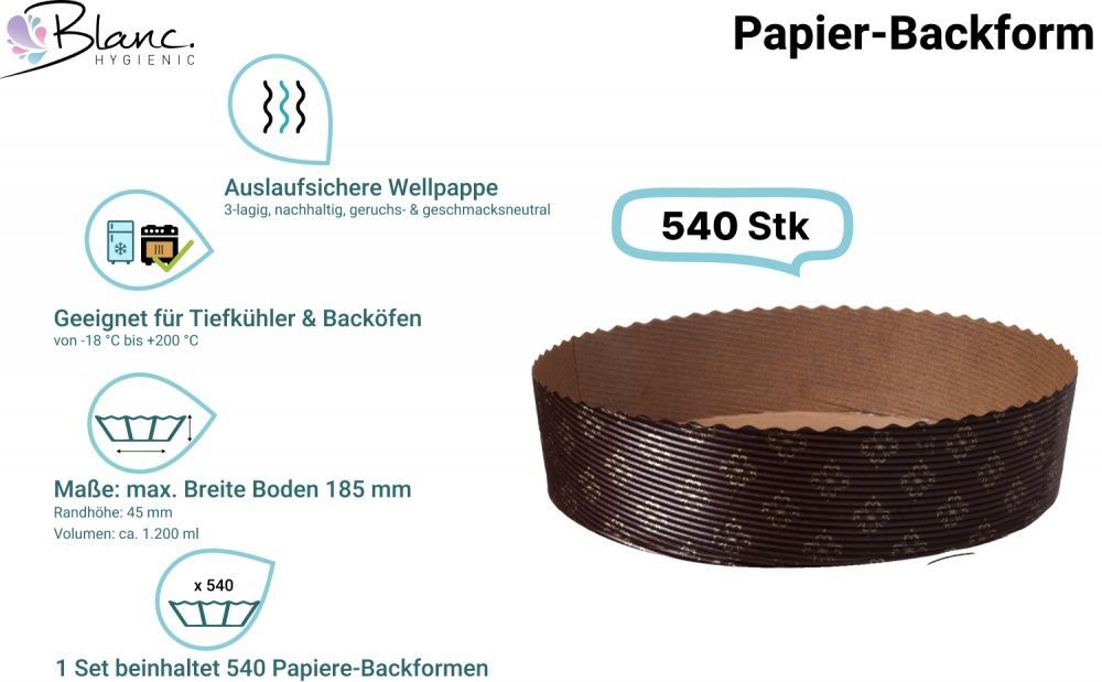 Papier-Backformen rund groß, 540 Stück, 185x45mm, Backofen geeignet, aluminiumfrei, g
