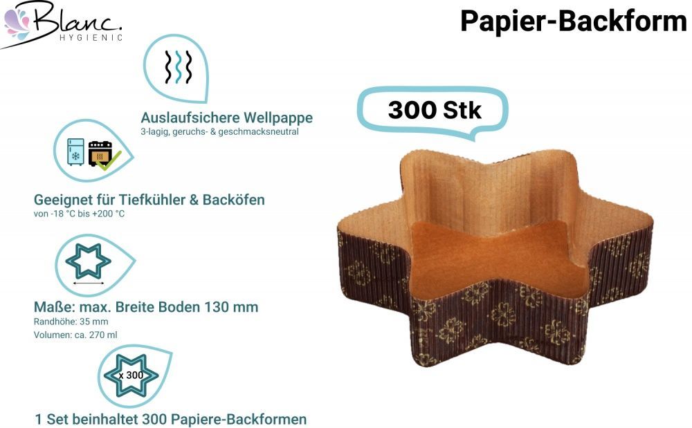 Papier-Backformen Stern klein, Weihnachten, 300 Stück, 130x35mm, Volumen ca. 270ml