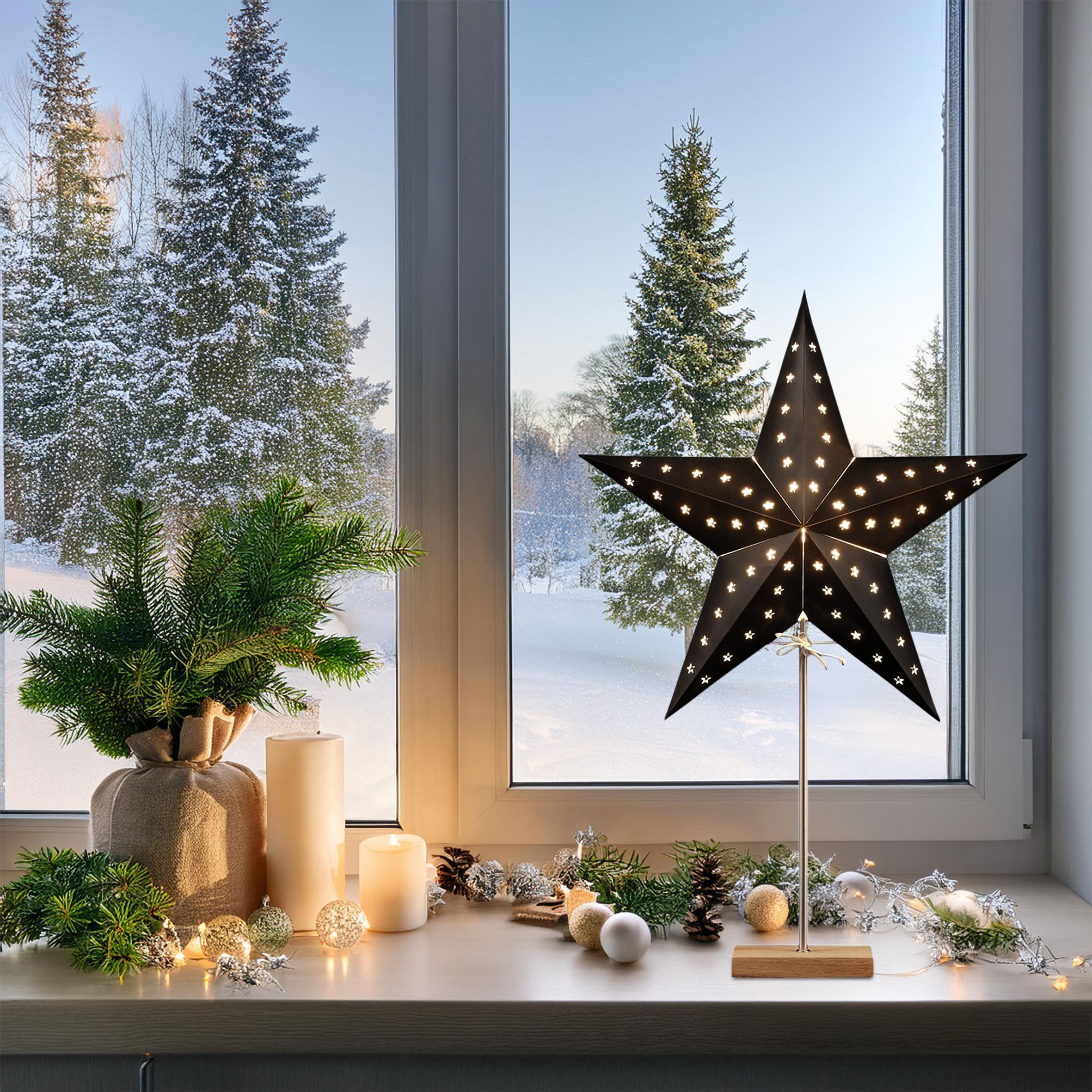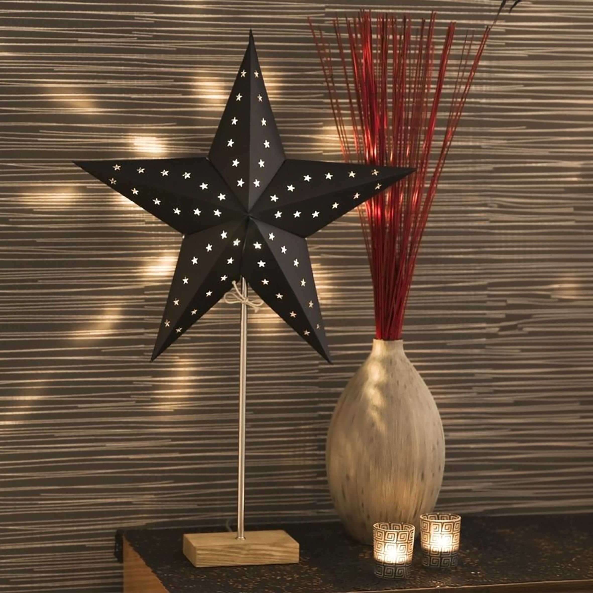 Papier Stern Tisch Leuchte schwarz - 69cm - Weihnachten Advent Winter Deko Lampe