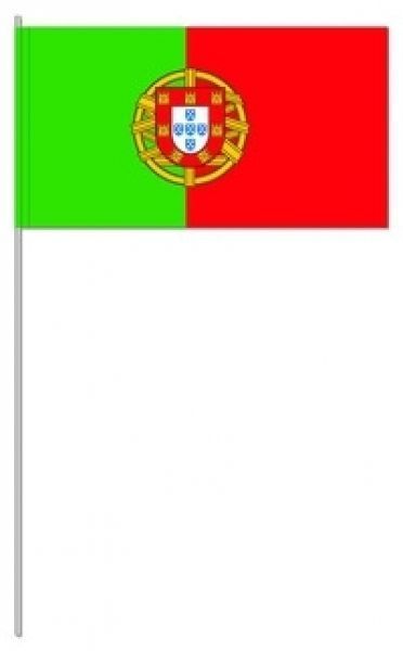 Papierfähnchen "Portugal" - ca. 12 x 24 cm inkl. Kleberand an weißem ca. 40 cm Polystyrolstab Durchmesser: 4 mm geklebt - 10 Stück