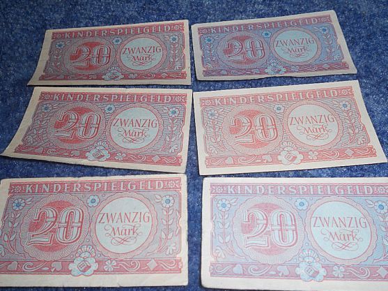 Papiergeld / Kindergeld / Spielgeld für Kaufmannsladen - 70er Jahre -6 x 20 Mark
