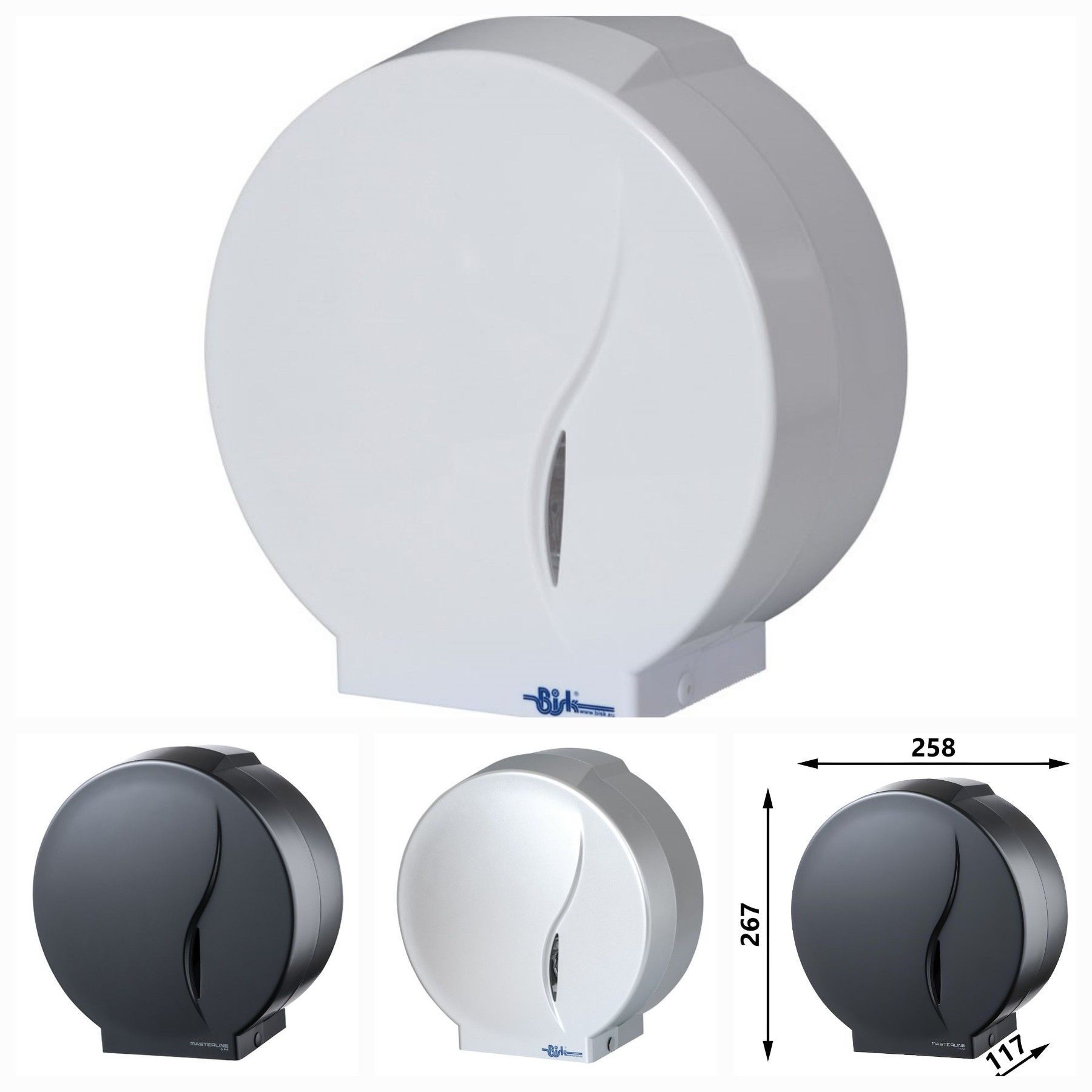 Papierrollenspender JUMBO zur Wandmontage 3 Farben zur Auswahl: - Weiss - Schwarz - Silber matt Ideal für in Restaurants, Büros oder Hotels NEU & Originalverpackt! Spezifikationen: - geeignet für Rollen mit einem Durchmesser von 19 cm und 23 cm - Schlüsselschloss-Desi - Kontrollfenster zur einfachen
