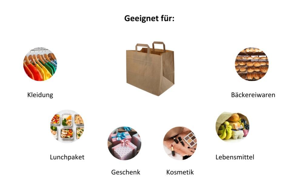 Papiertragetasche 26+17x25 cm Braun 1 x 250 Stück 55828 Diese braune Papiertragetasche in den Maßen 26 + 17 x 25 cm ist eine praktische und umweltfreundliche Lösung für den Transport kleinerer Gegenstände. Mit einer Packungsgröße von 250 Stück eignet sie sich ideal für Geschäfte, Märkte, Imbisse und