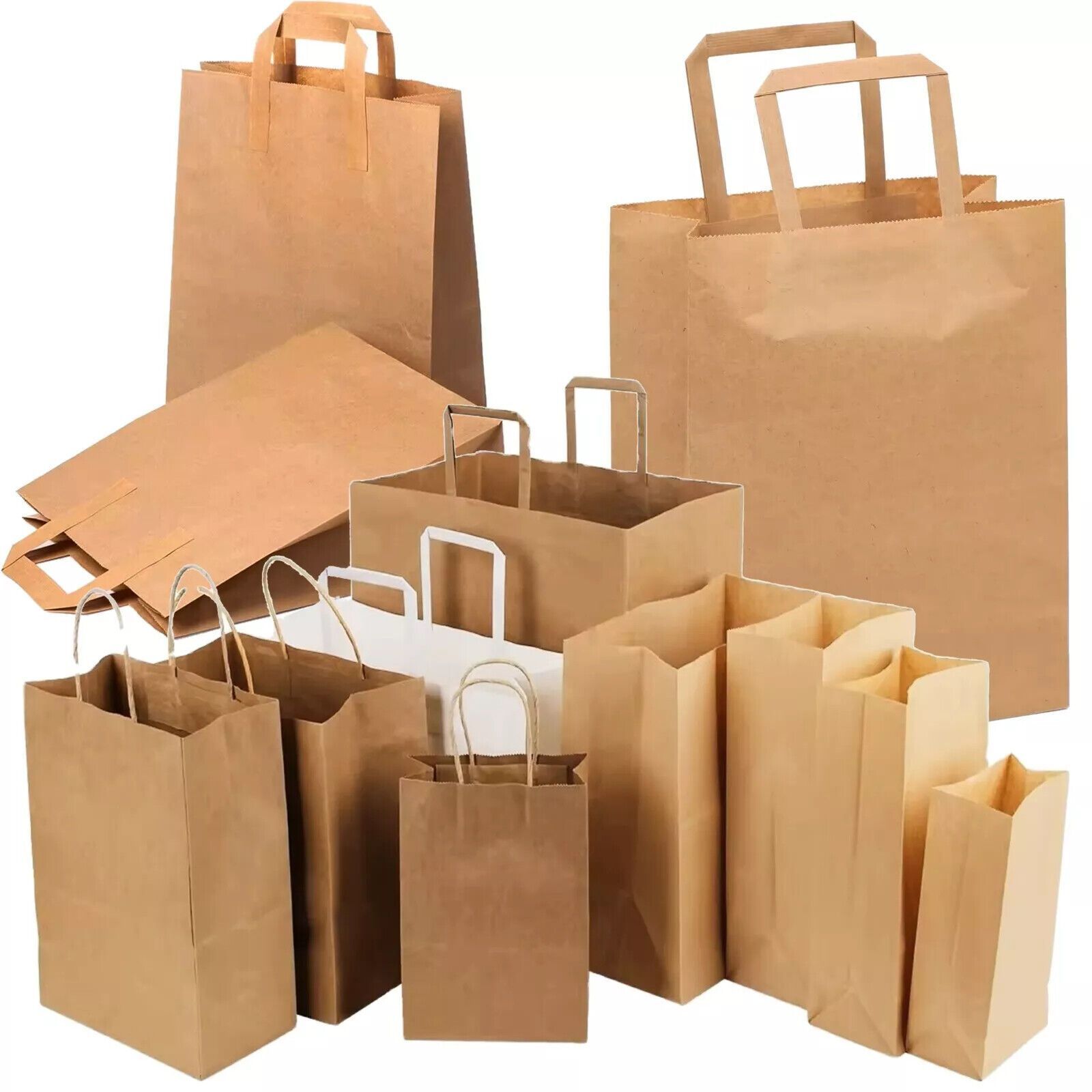 Papiertüten Papiertragetaschen Bügel Griff Papier Tüte braun Tragetasche Tüten