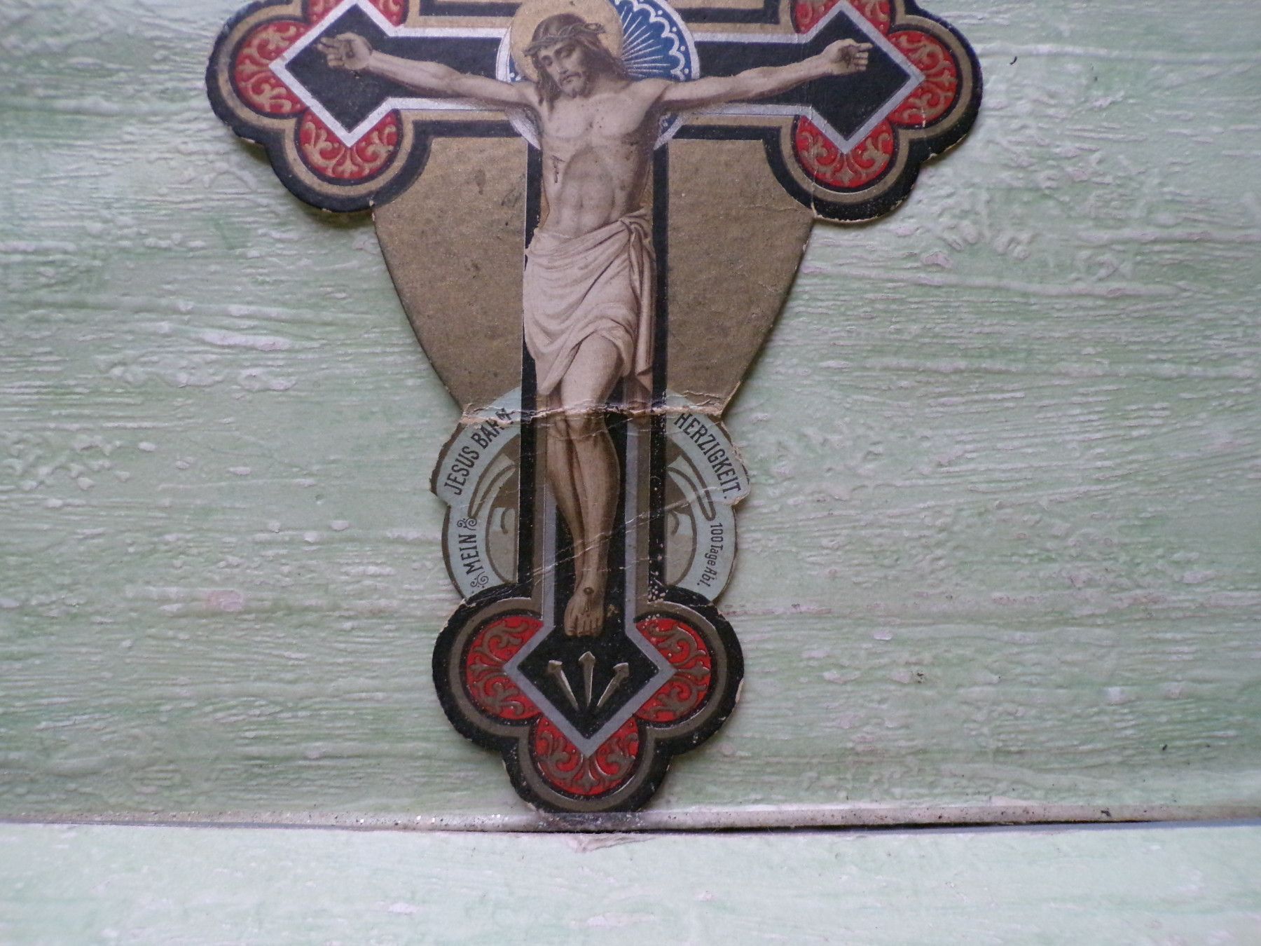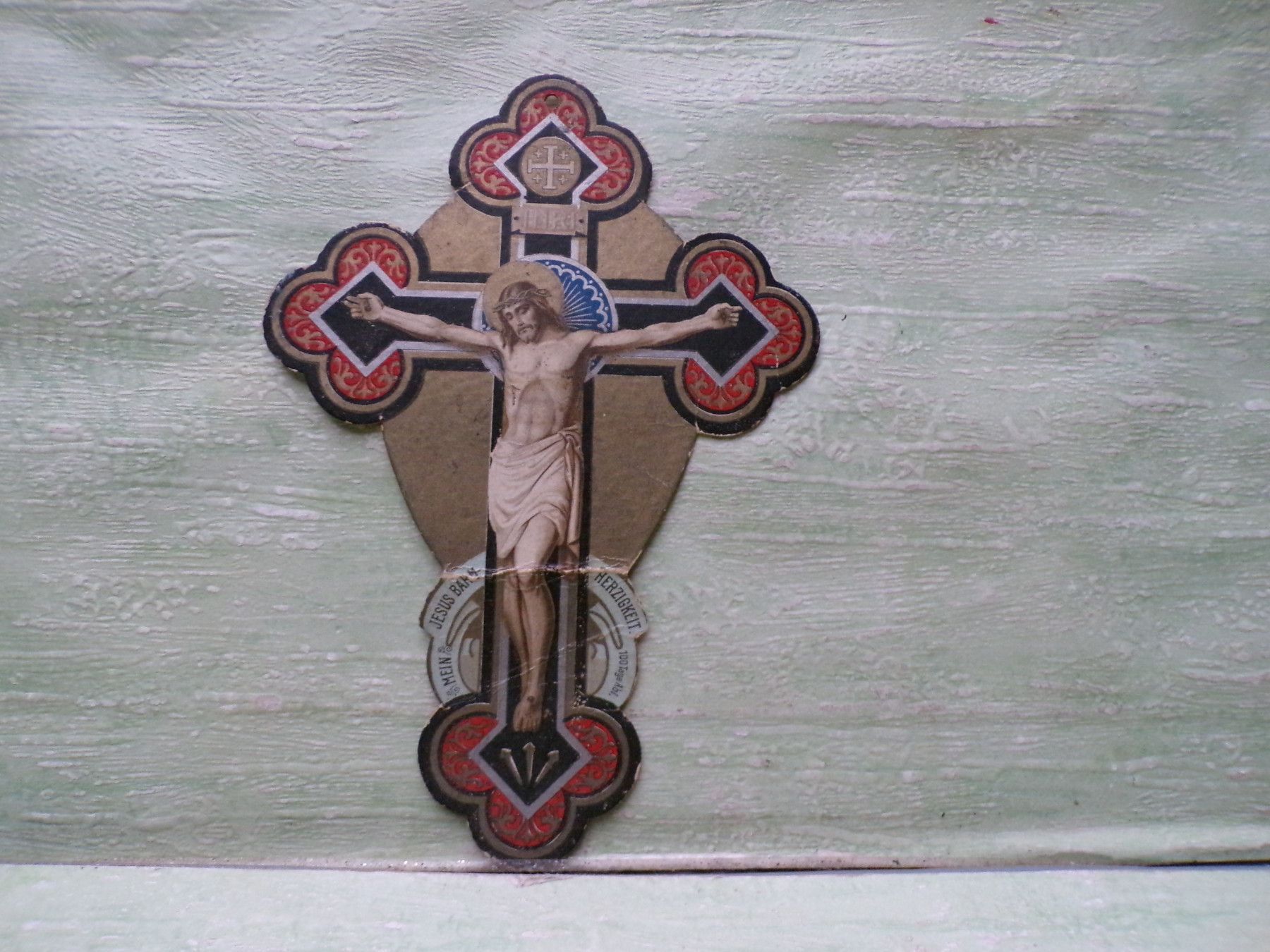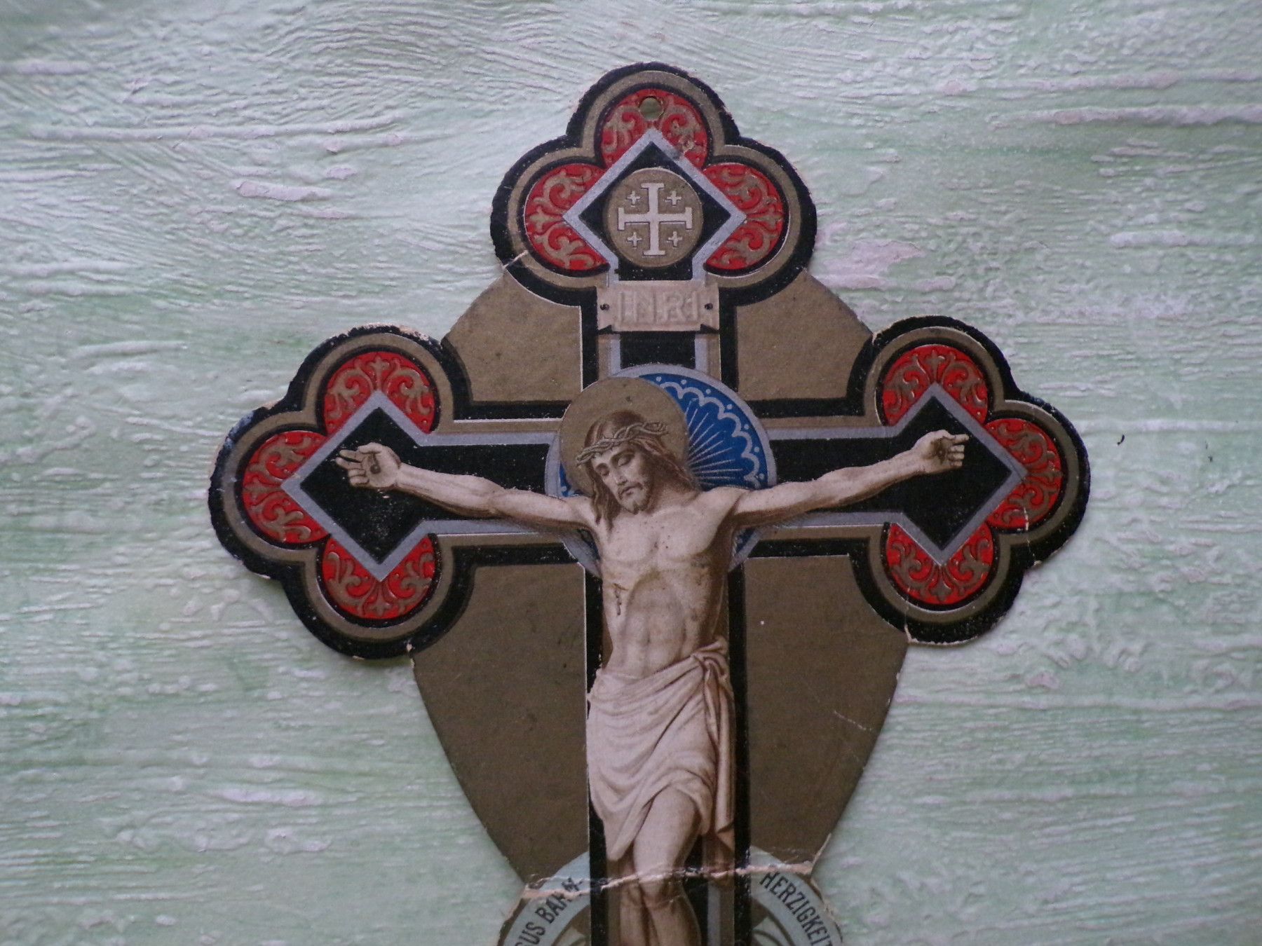 * * * Sammeln & Seltenes - Reklame & Werbung * * * * ... aus Freude an schönen Dingen ..... altes Kruzifix aus Pappe ca 19cm leider mit Knick - siehe Foto Rückseite : Kurzform: Allen Gläubigen... gewährt Papst Pius XII durch Dekret vom 23.12.1942 für die Dauer des gegenwärtigen Krieges ... A