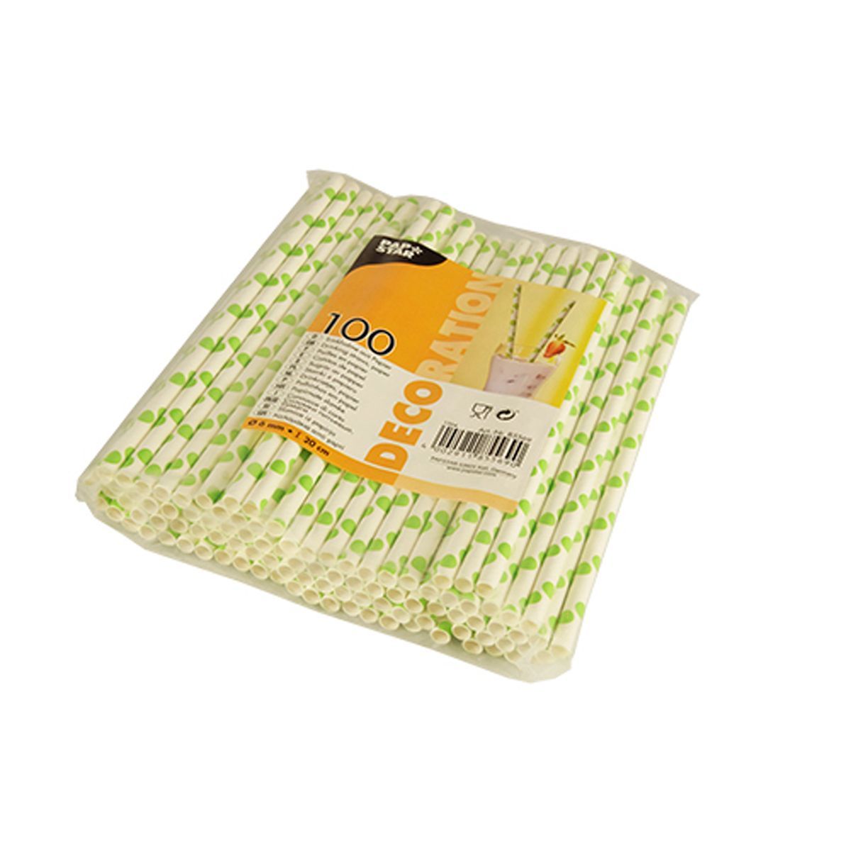 Papstar Trinkhalme Papier green Dots 6x200mm 100 Stück