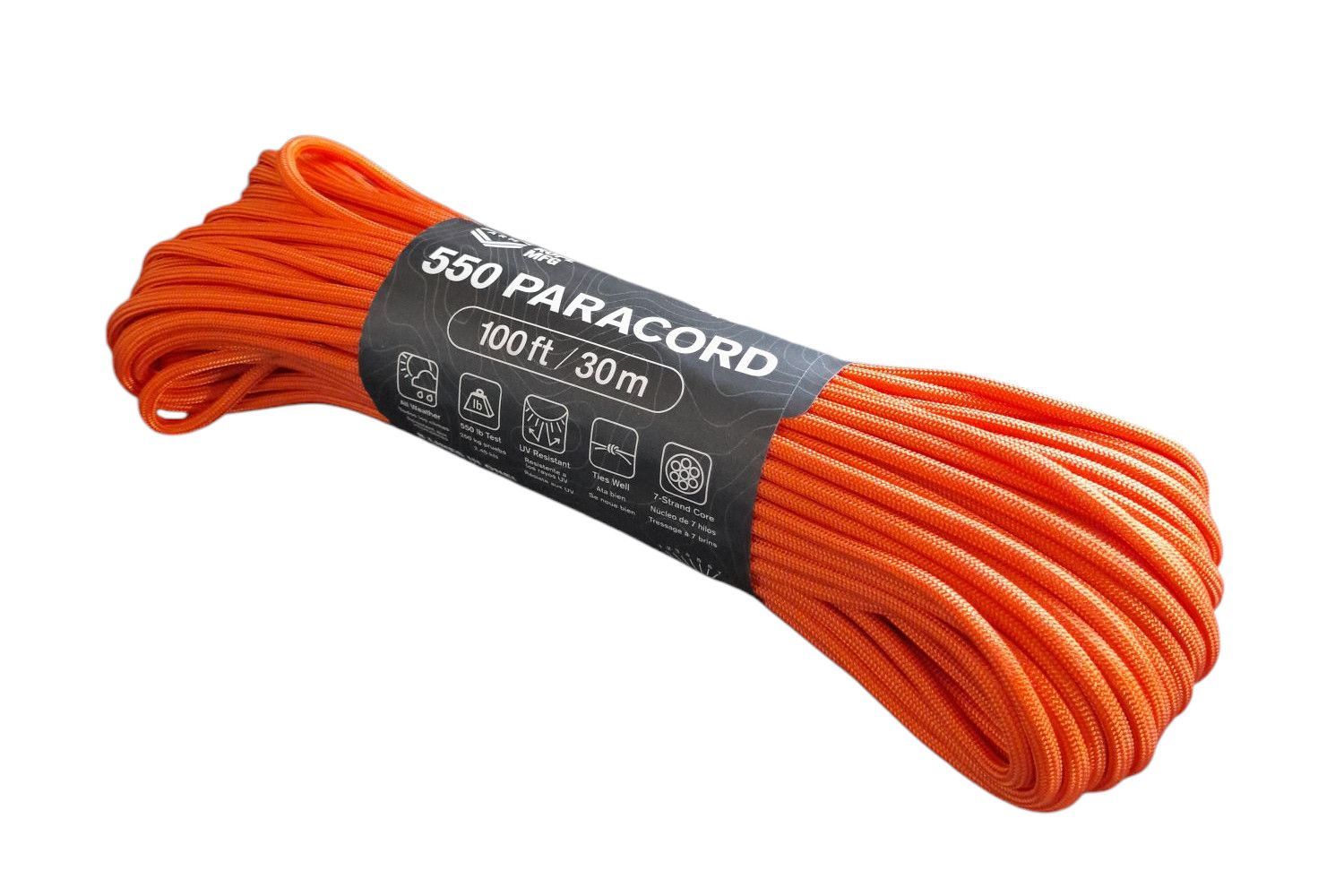 Paracord 550 Fallschirmschnur, 30 Meter, Neon Orange, bis 250kg belastbar