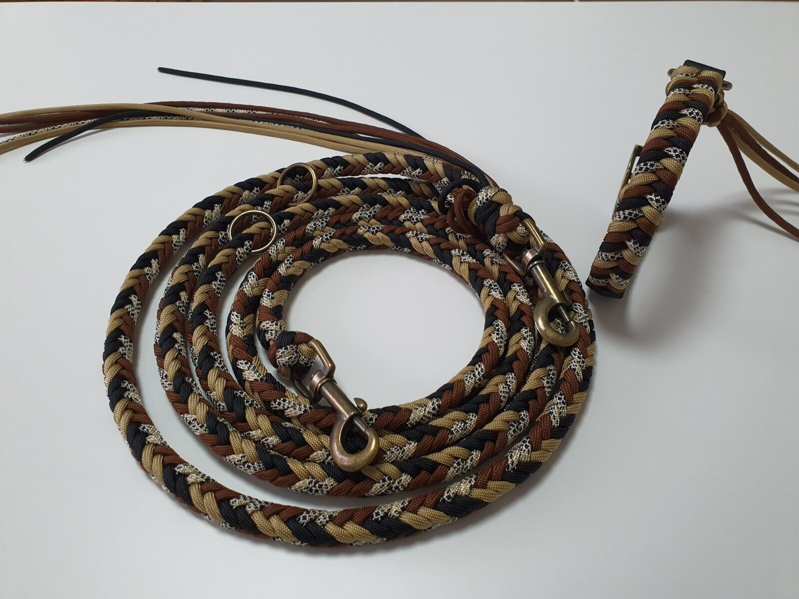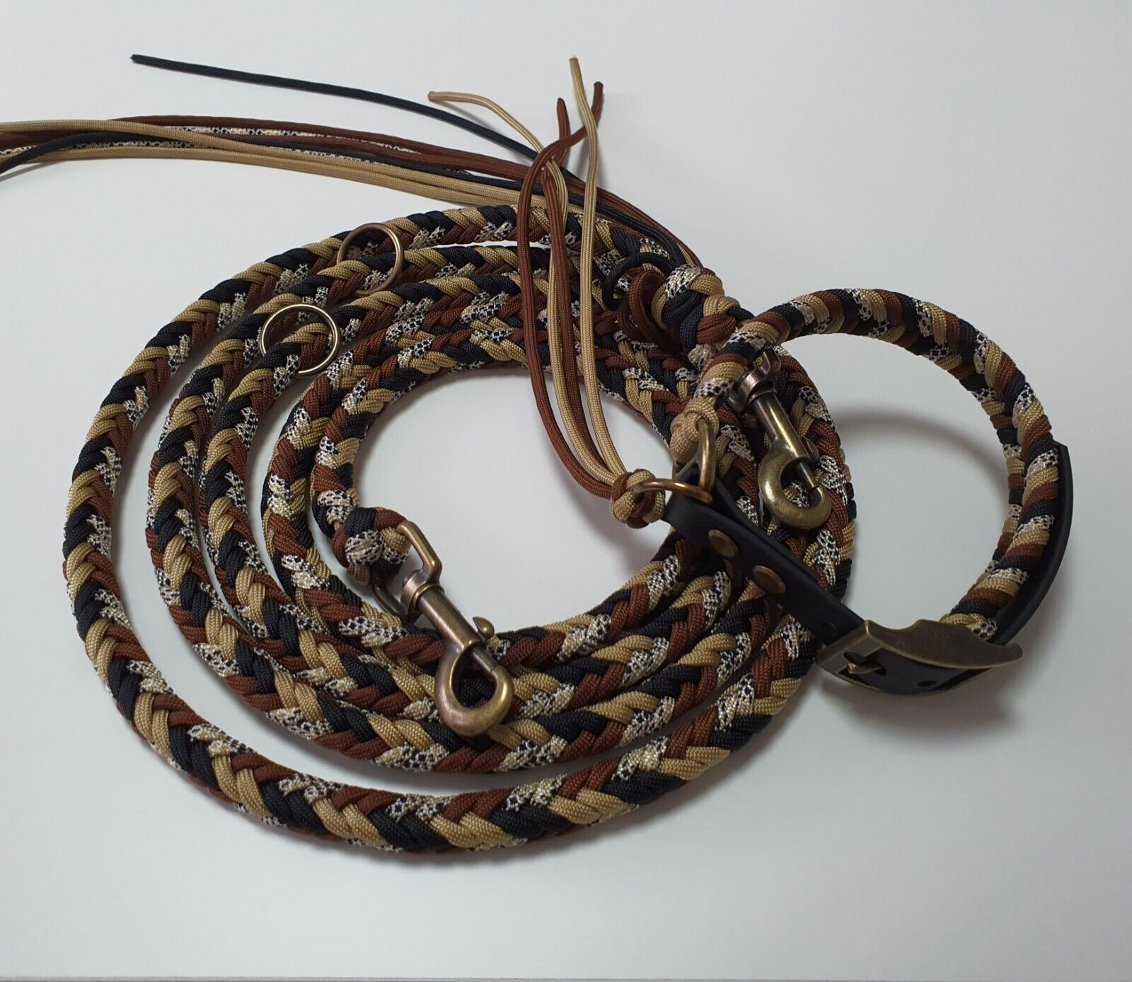 Paracord-Set (Hundeleine & Hundehalsband) „Herringbone“ Braun - 100 % Handarbeit