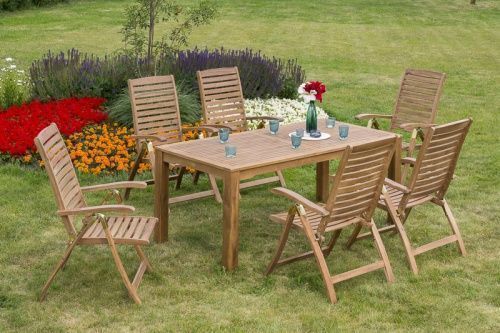 Merxx Paraiba Gartenmöbel Set 7tlg., 6 Klappsessel, Tisch 185x90 cm