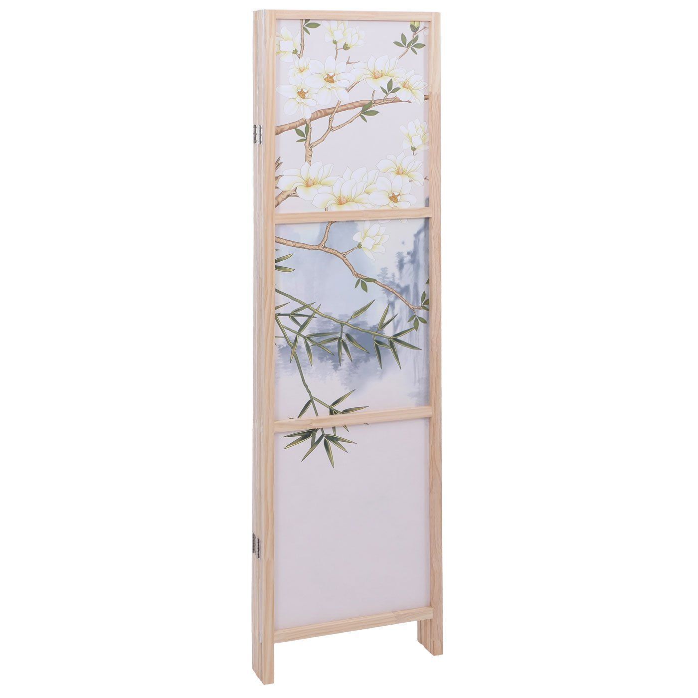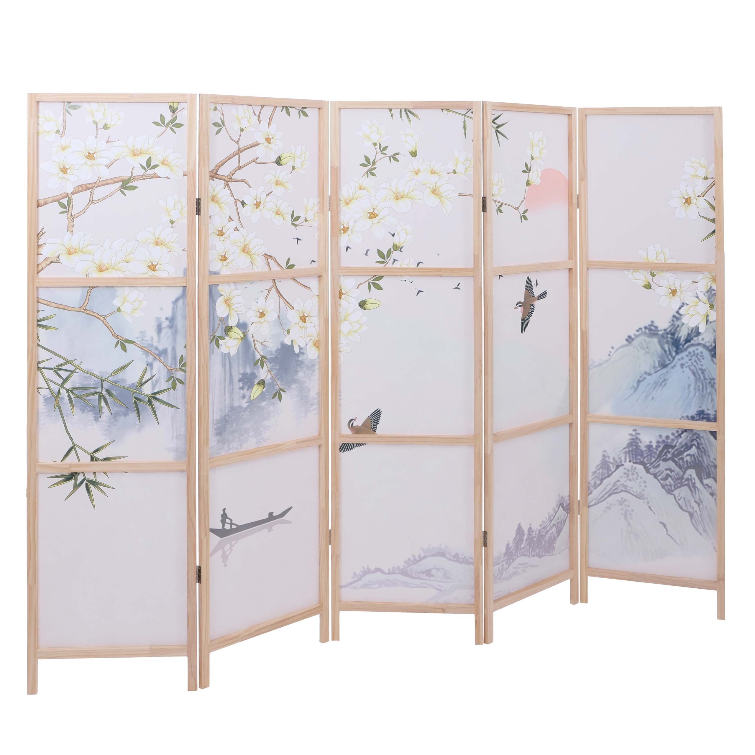 Mendler Paravent HWC-O70, Trennwand Raumtrennung Naturmotive Holz MVG Polyethylen 170x227cm