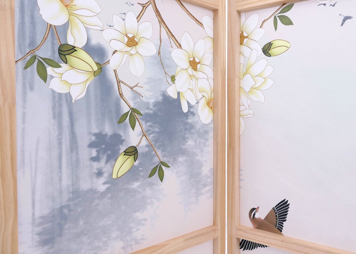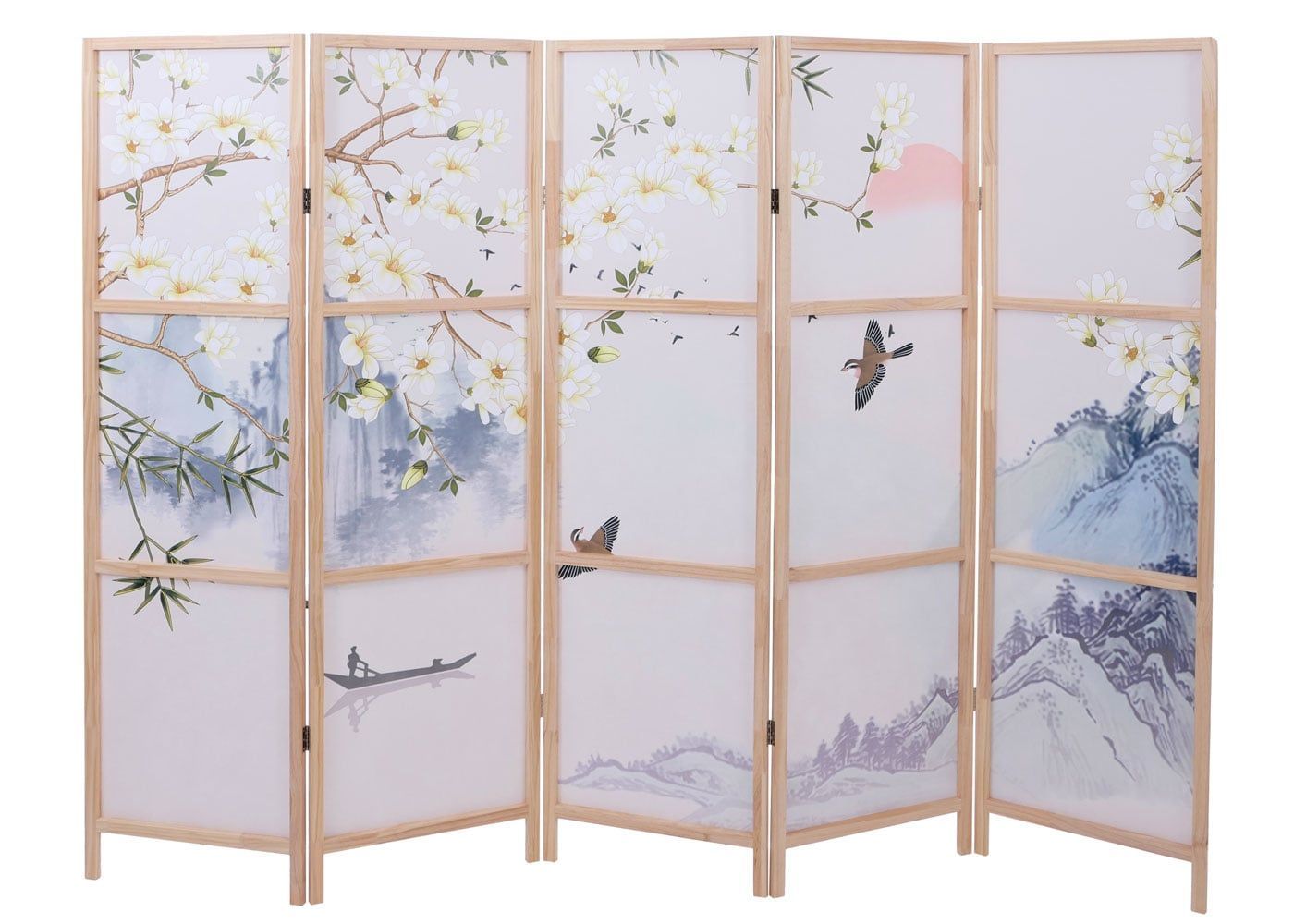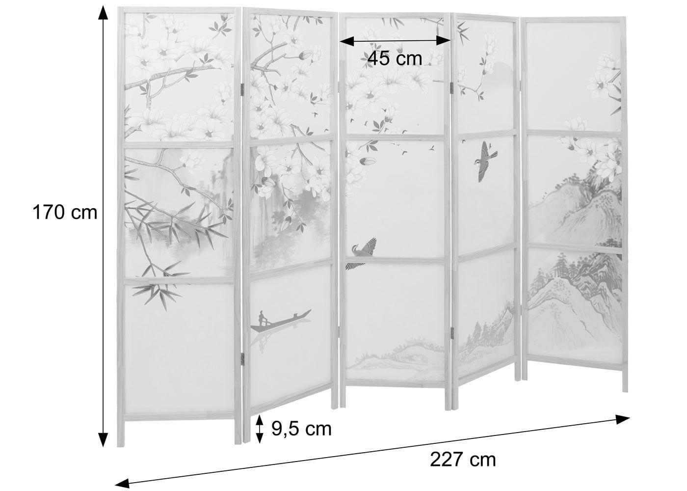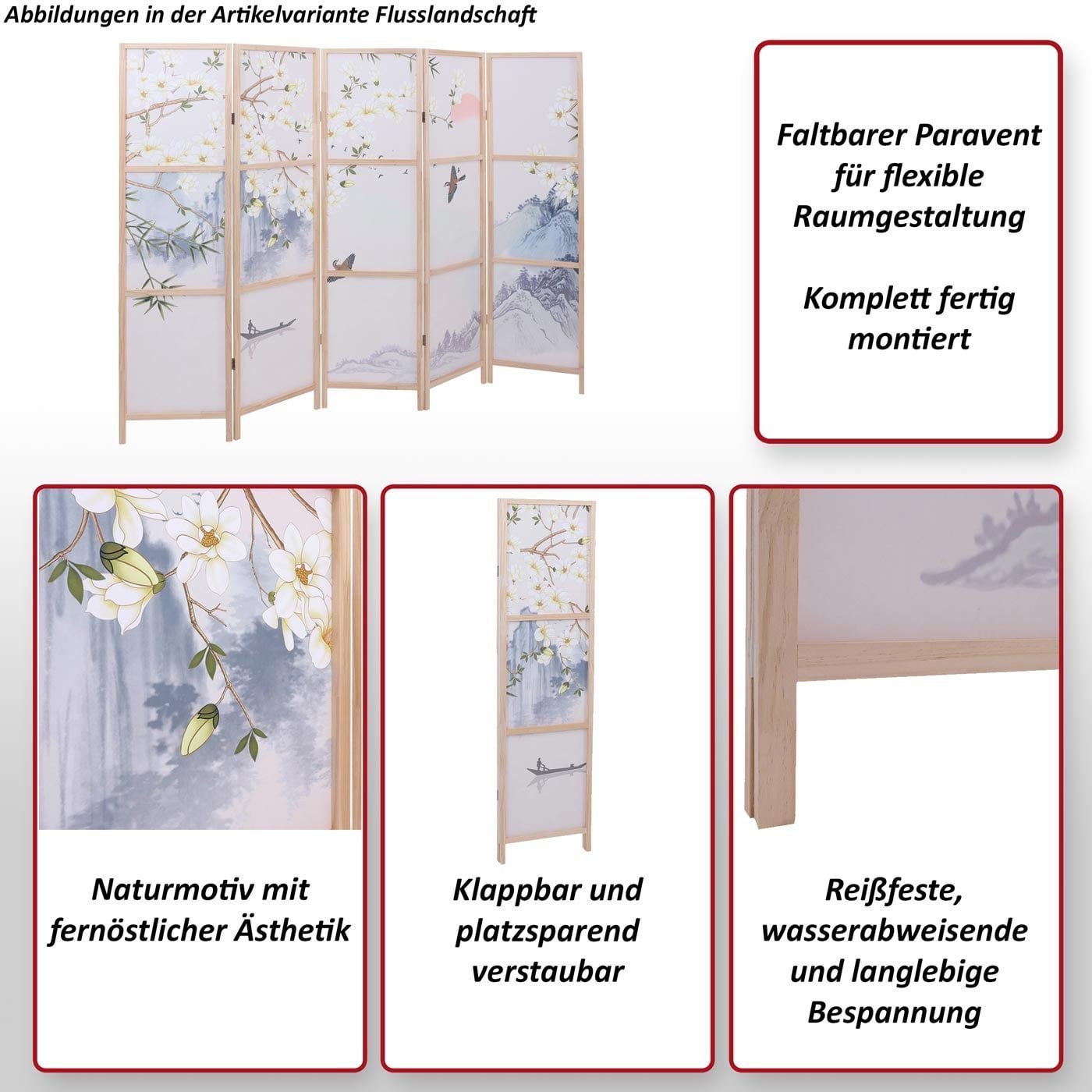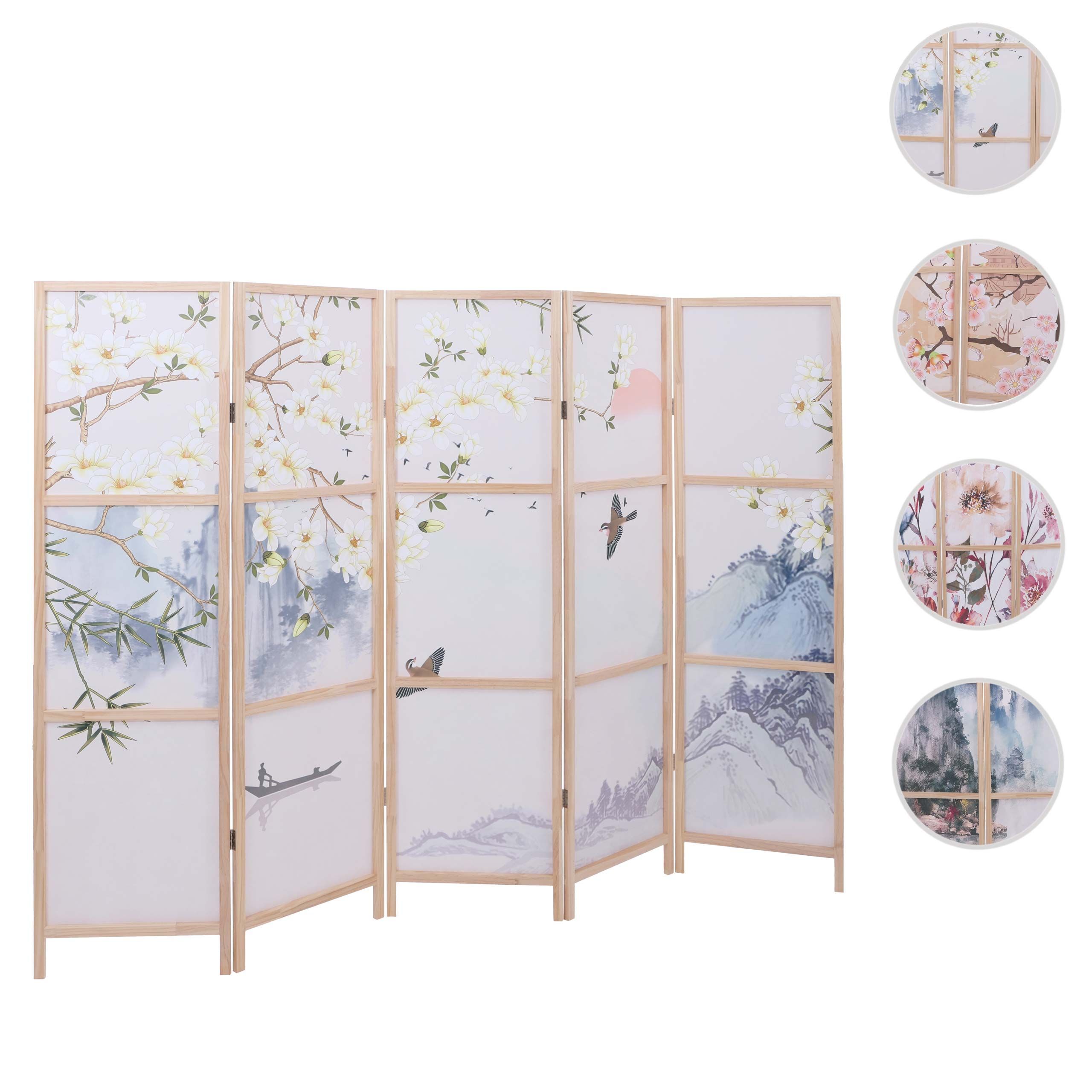 Mendler Paravent HWC-O70, Trennwand Raumtrennung Naturmotive Holz MVG Polyethylen 170x227cm