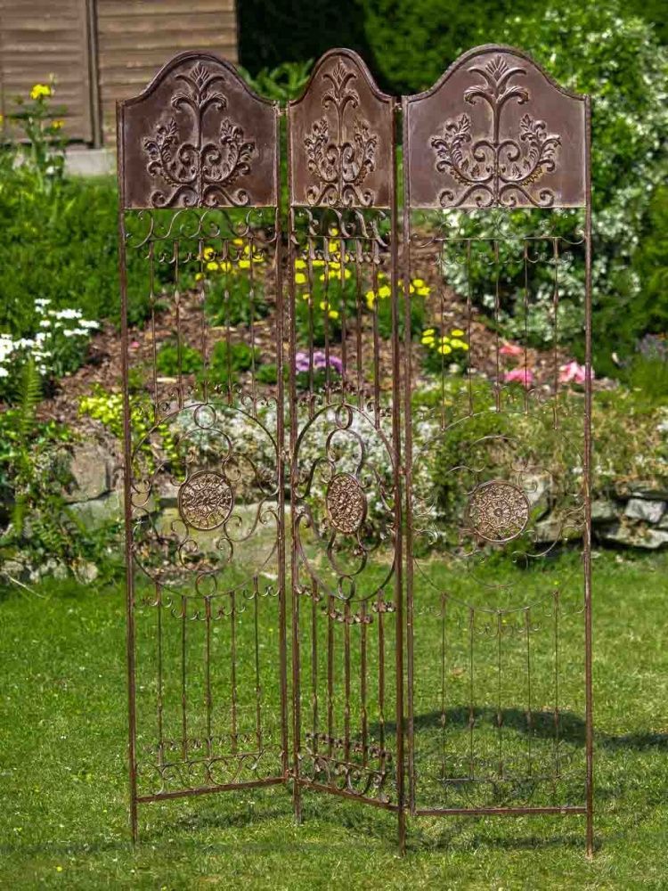 Paravent Pergola Spalier Rankhilfe Zaun 19kg Metall antik Stil Raumteiler braun