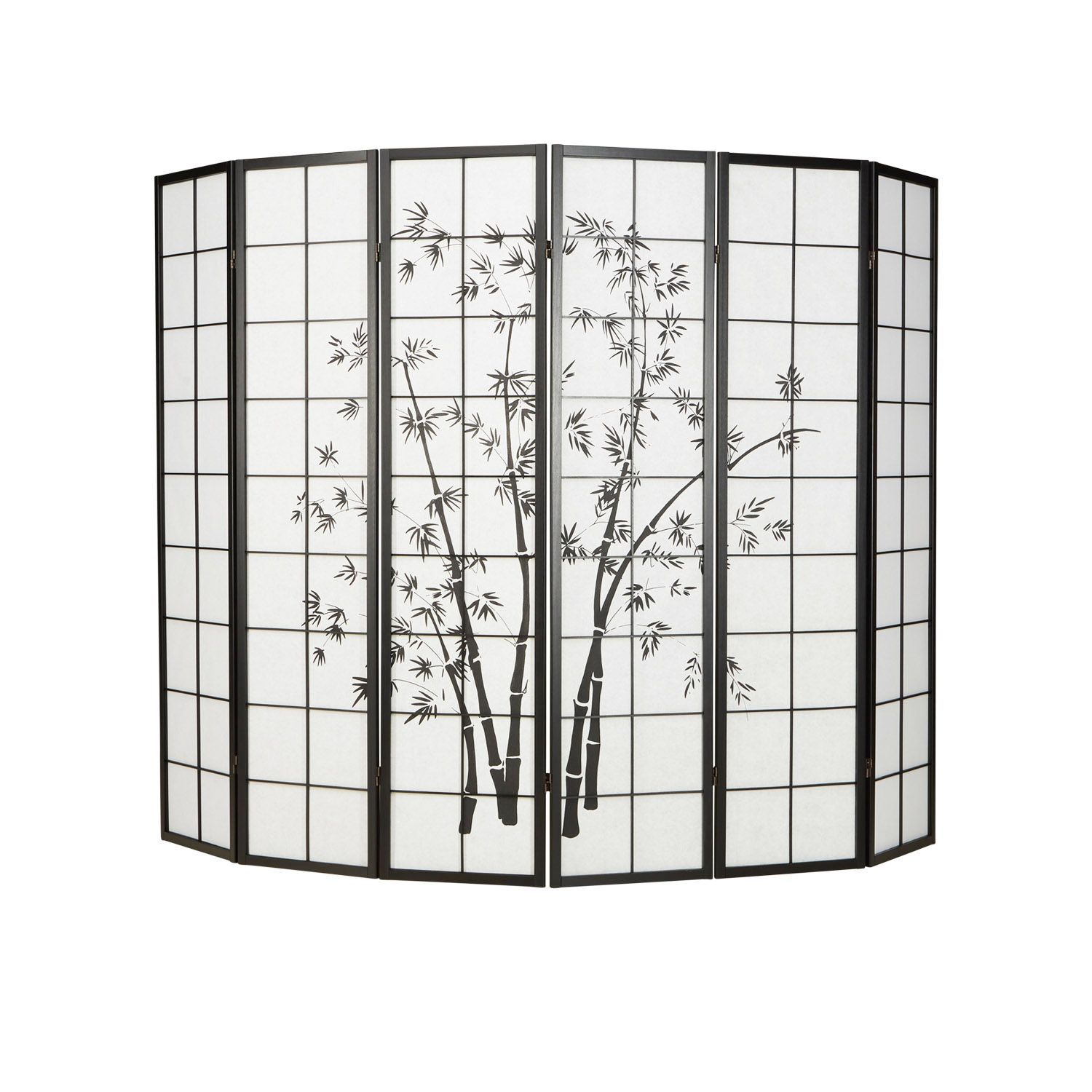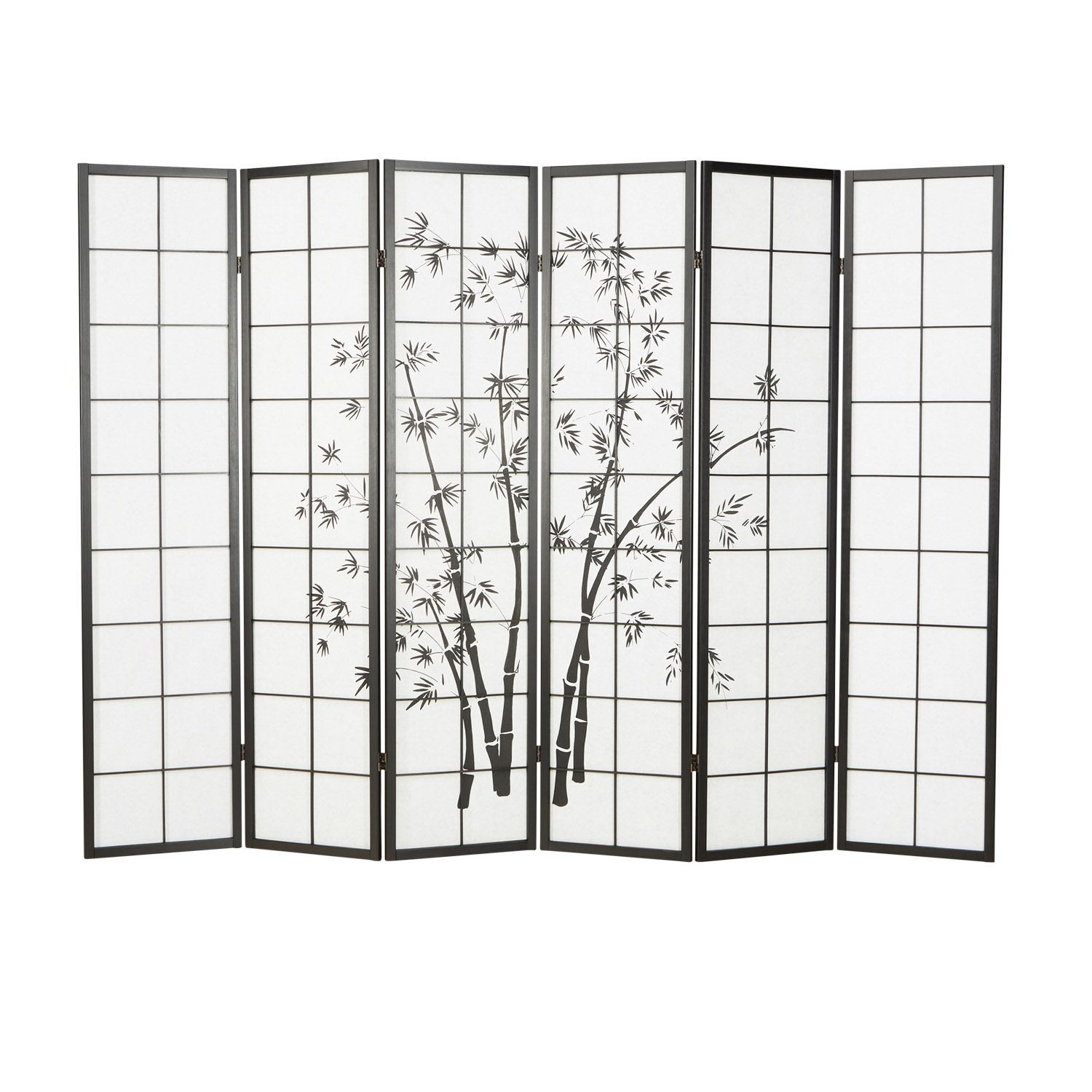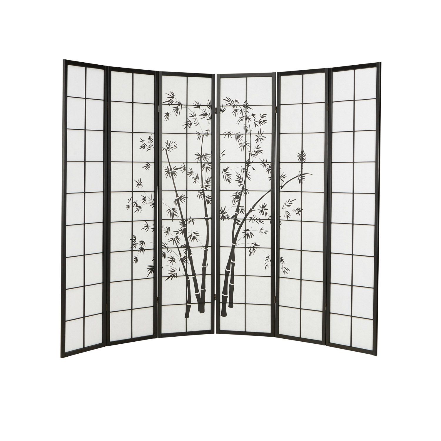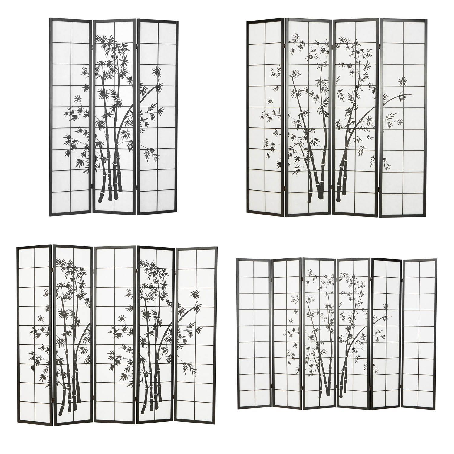 Paravent Raumteiler 3 4 5 oder 6 teilig, Holz Schwarz, Reispapier Weiß, Bambusmust