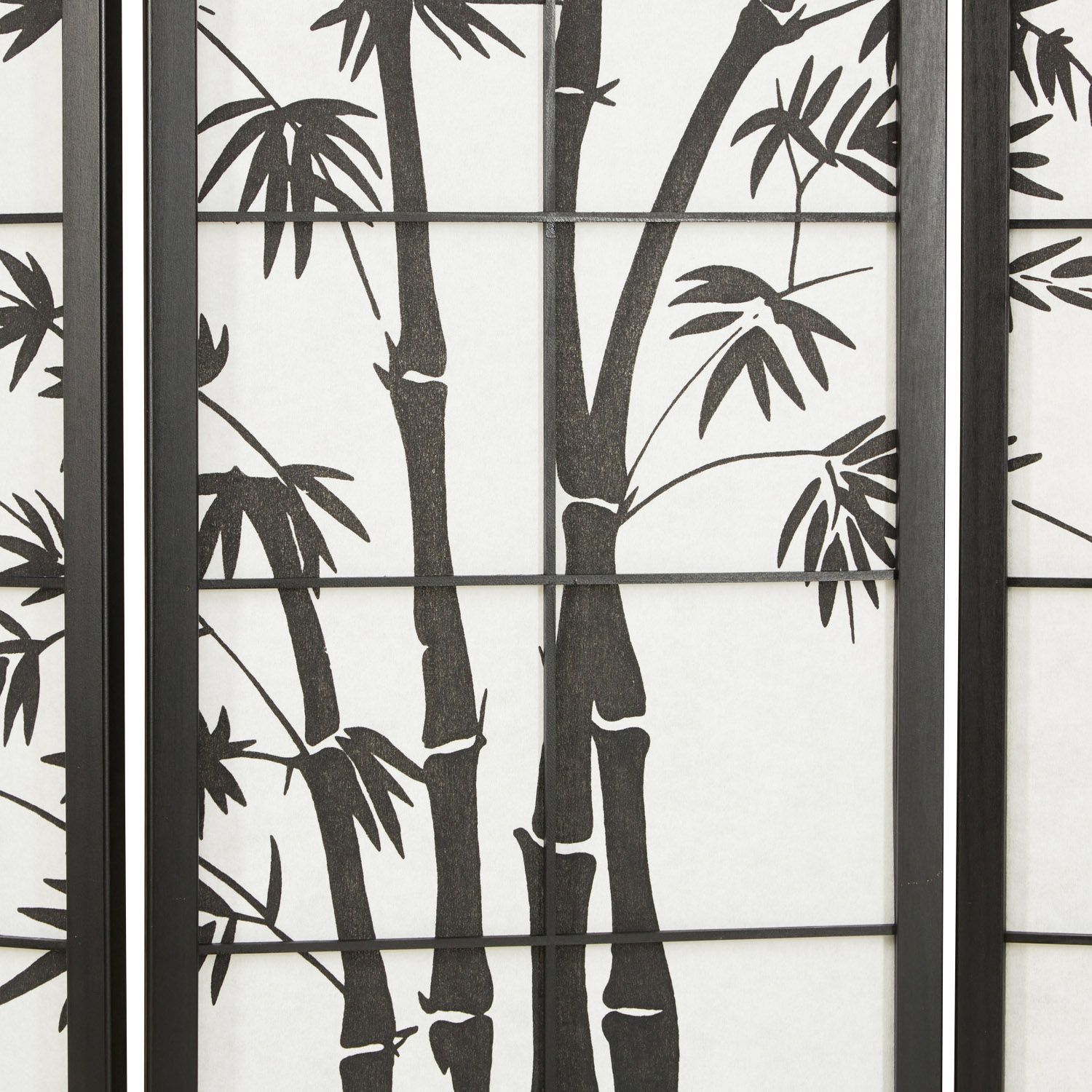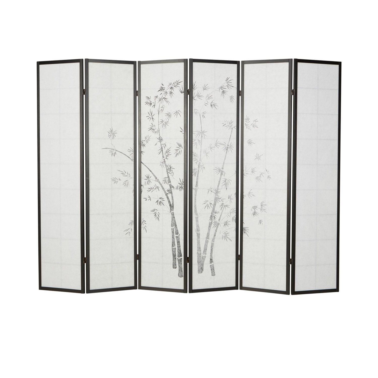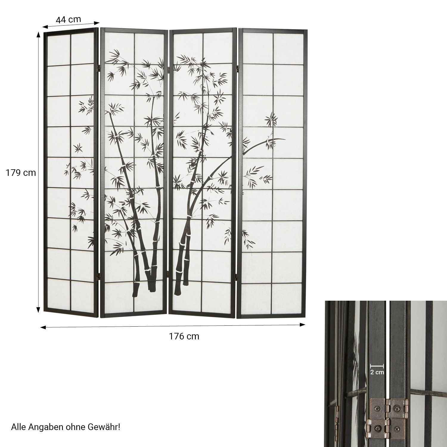 Paravent Raumteiler 3 4 5 oder 6 teilig, Holz Schwarz, Reispapier Weiß, Bambusmust