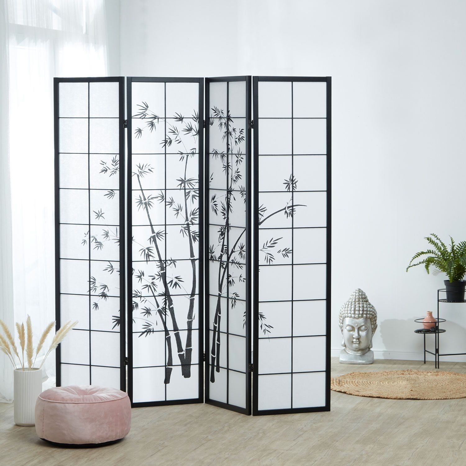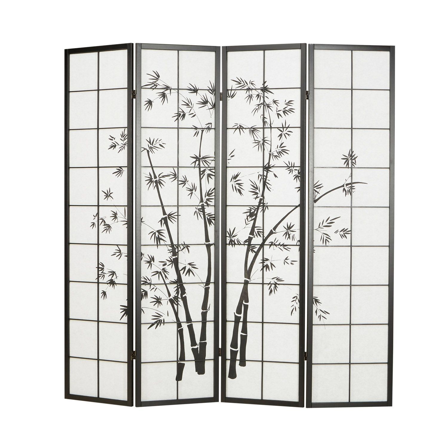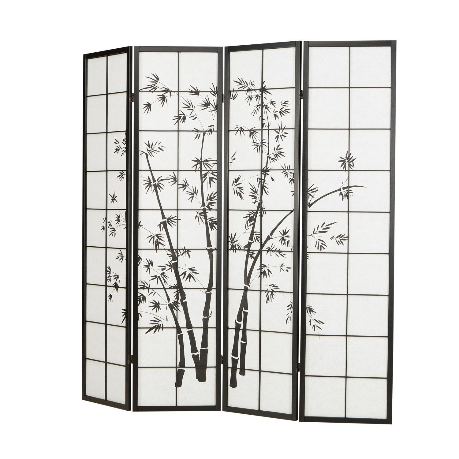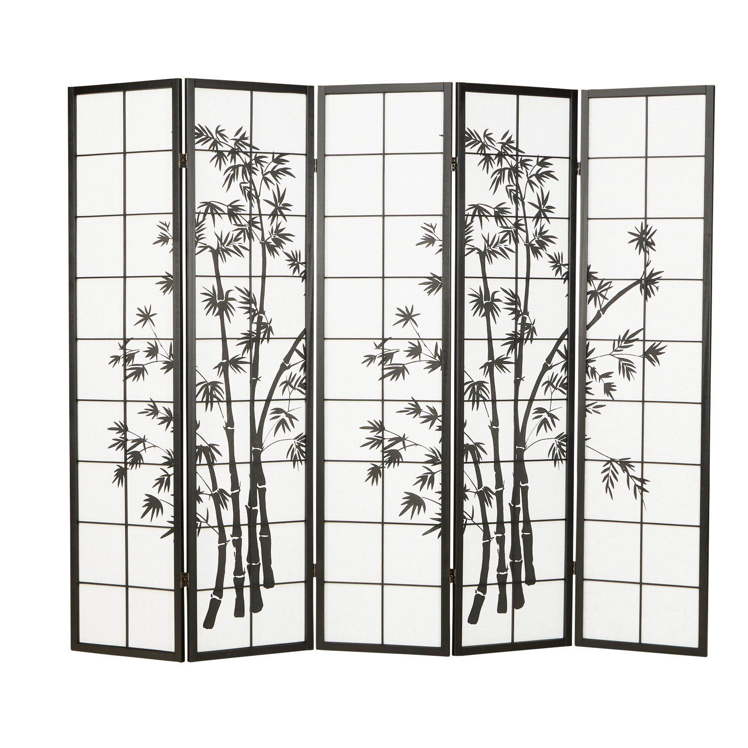 Paravent Raumteiler 3 4 5 oder 6 teilig, Holz Schwarz, Reispapier Weiß, Bambusmust