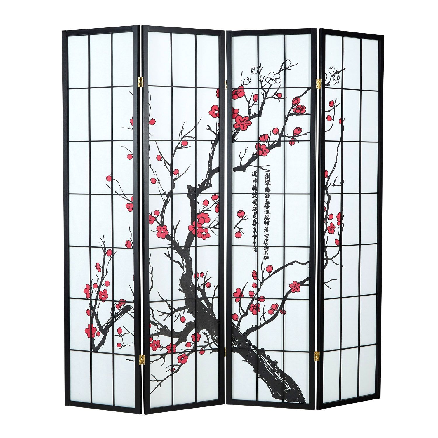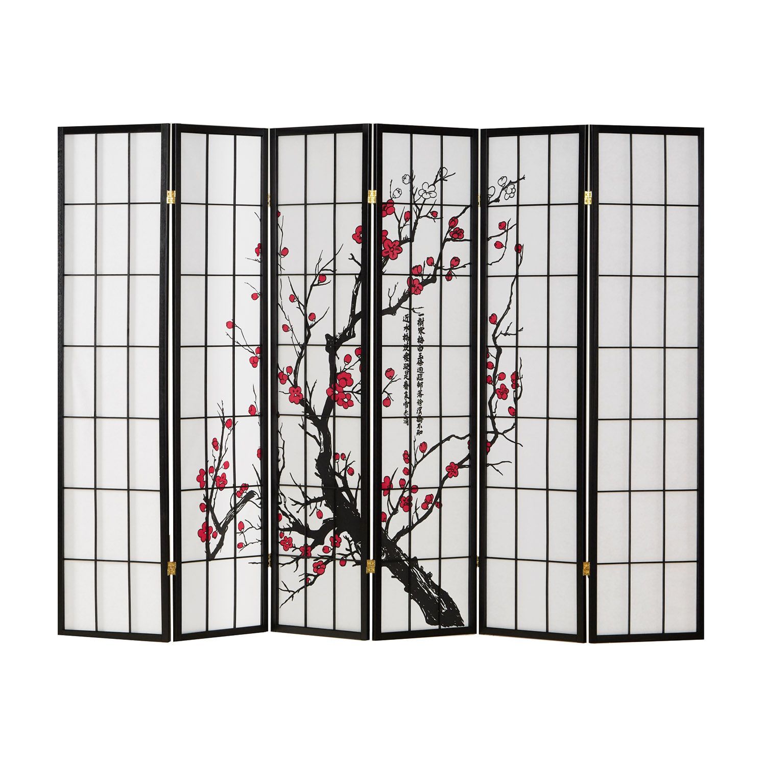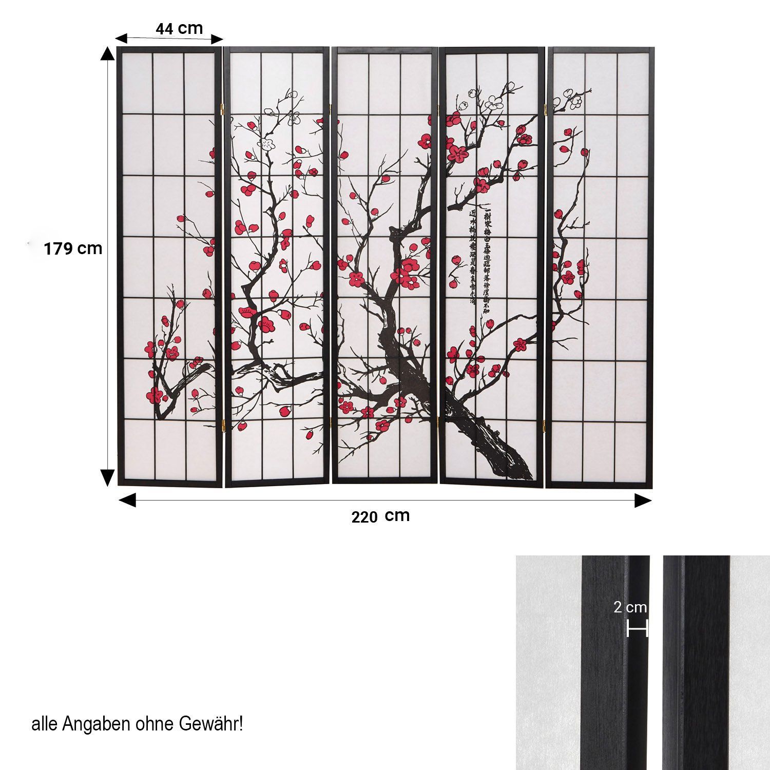 Paravent Raumteiler 3 4 5 oder 6 teilig, Holz Schwarz, Reispapier Weiß, Kirschmust