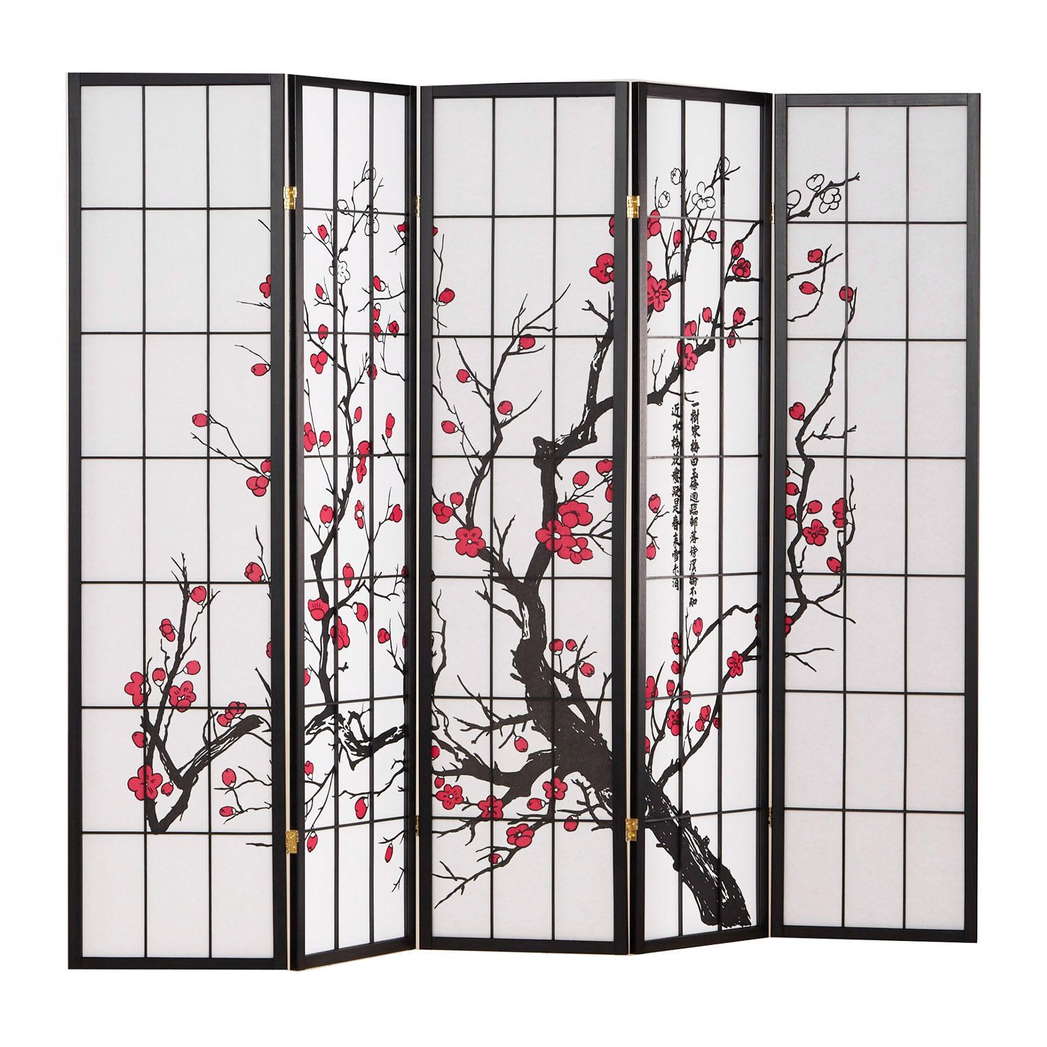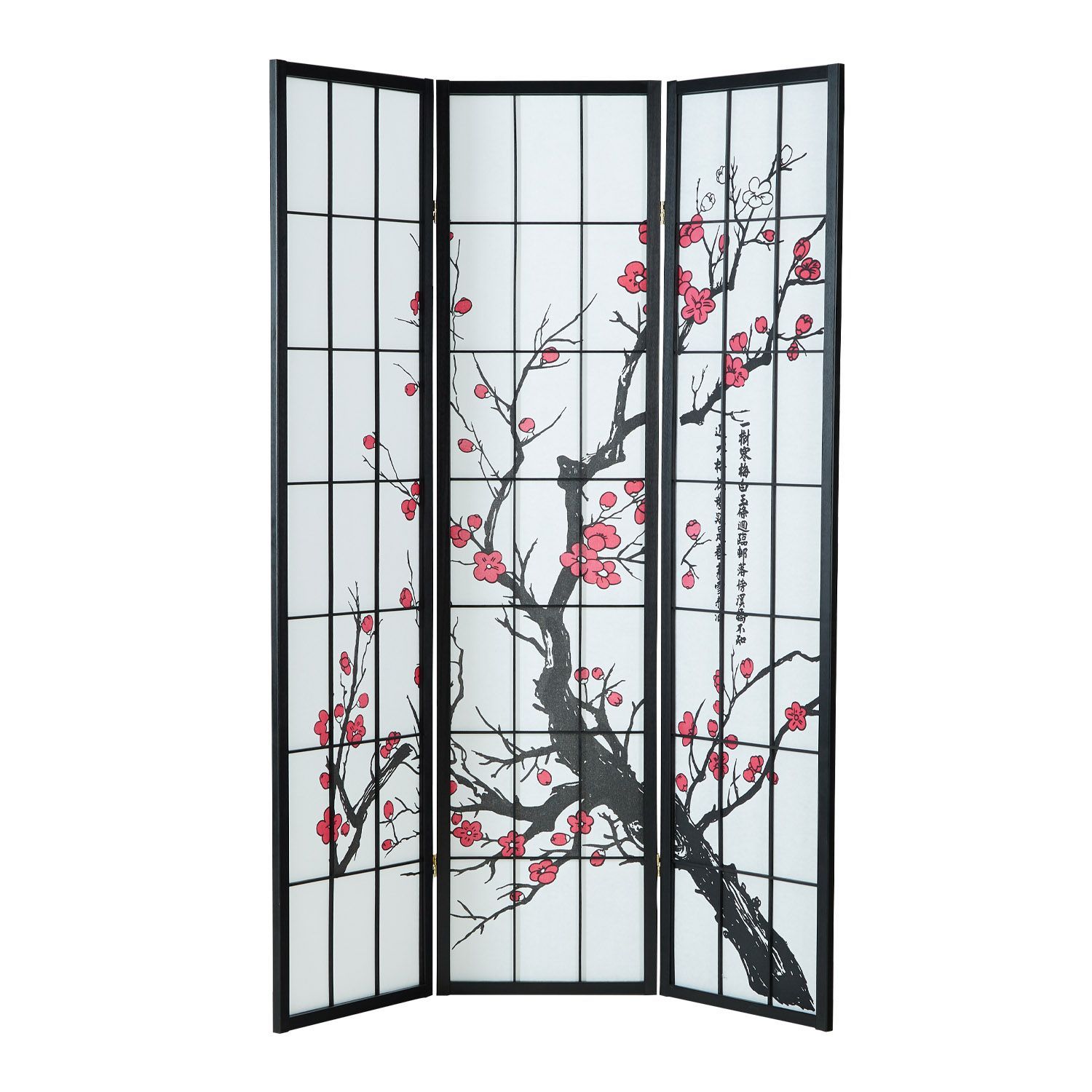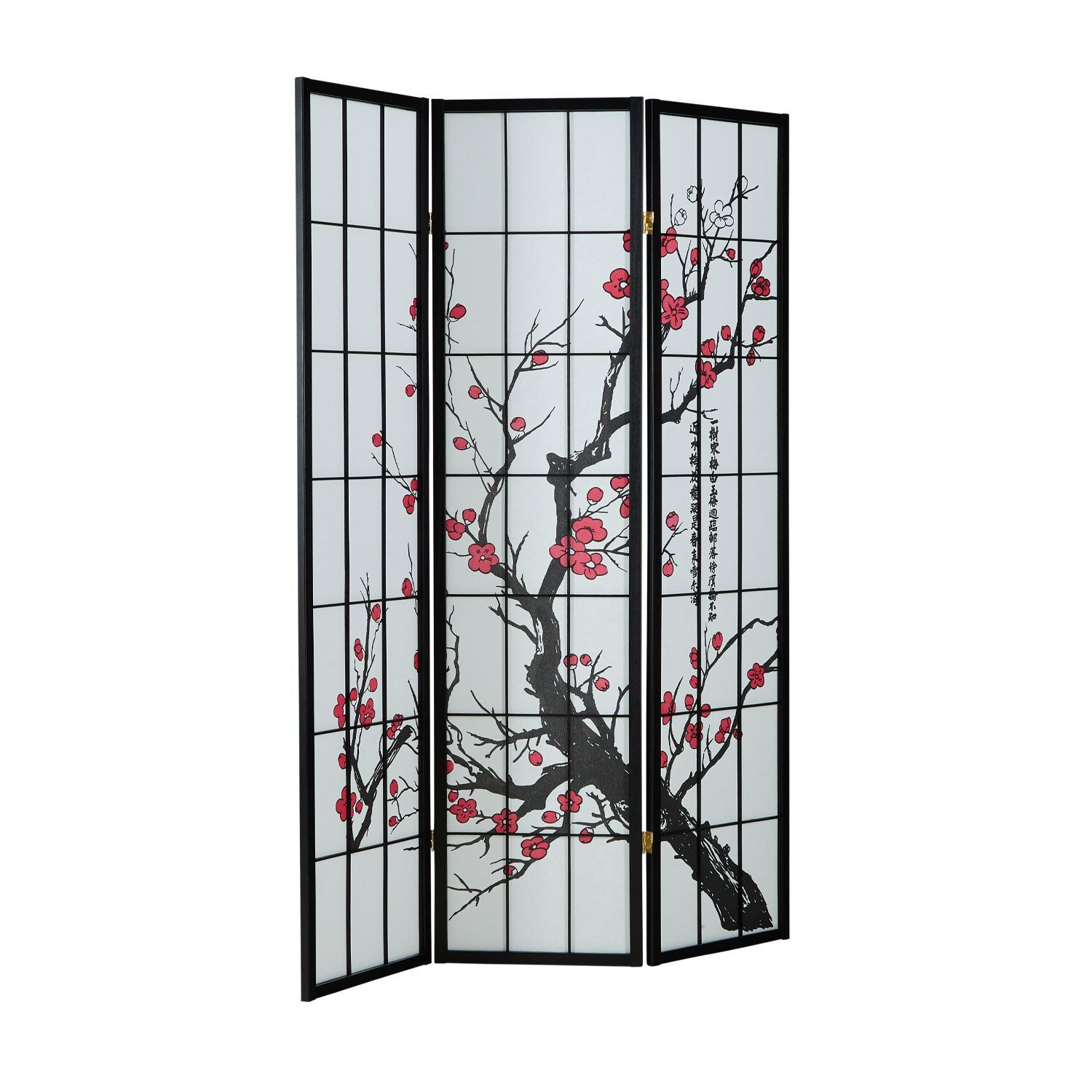 Paravent Raumteiler 3 4 5 oder 6 teilig, Holz Schwarz, Reispapier Weiß, Kirschmust