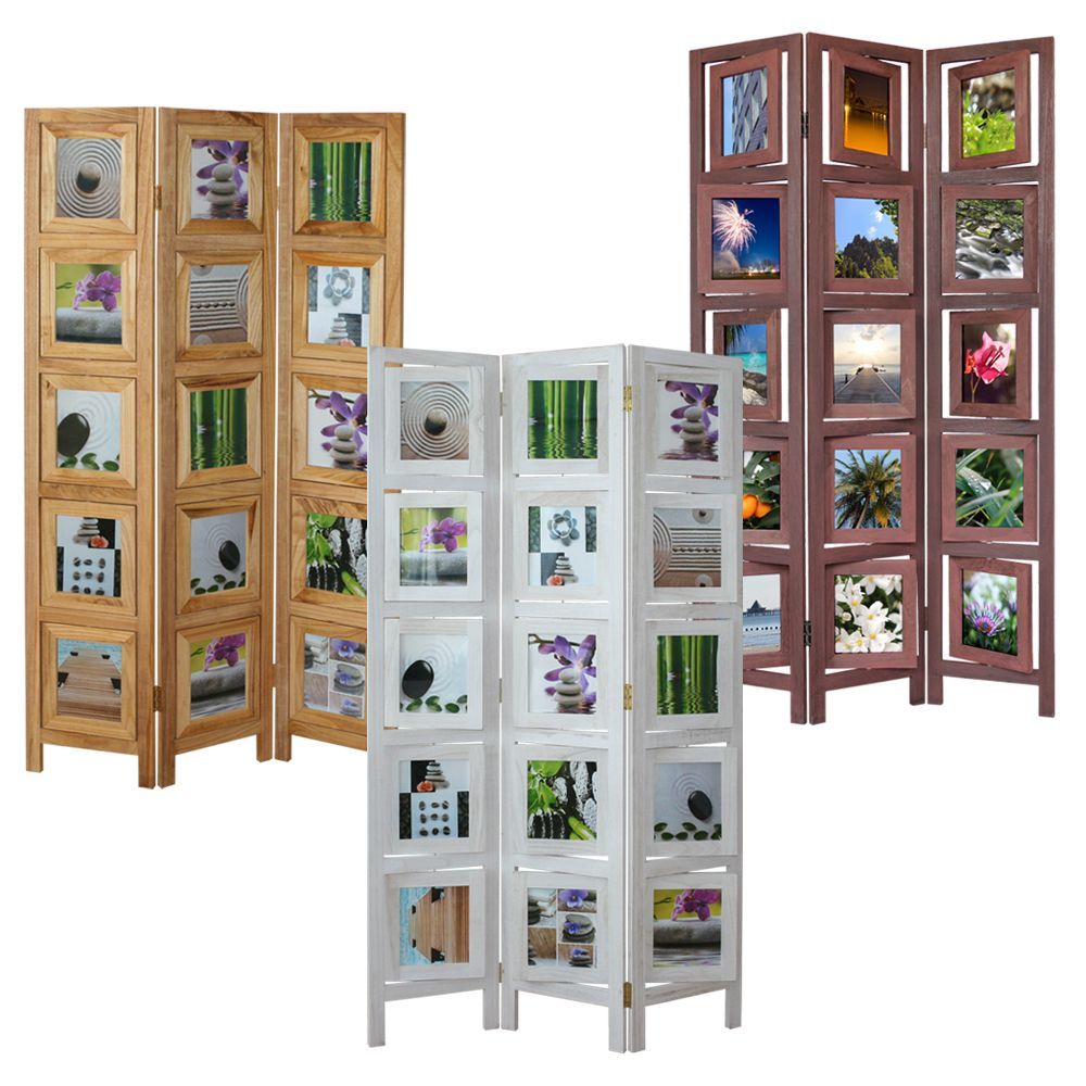 Paravent Raumteiler 3 teilig Fotos Bilder Weiß Braun Hellbraun Holz