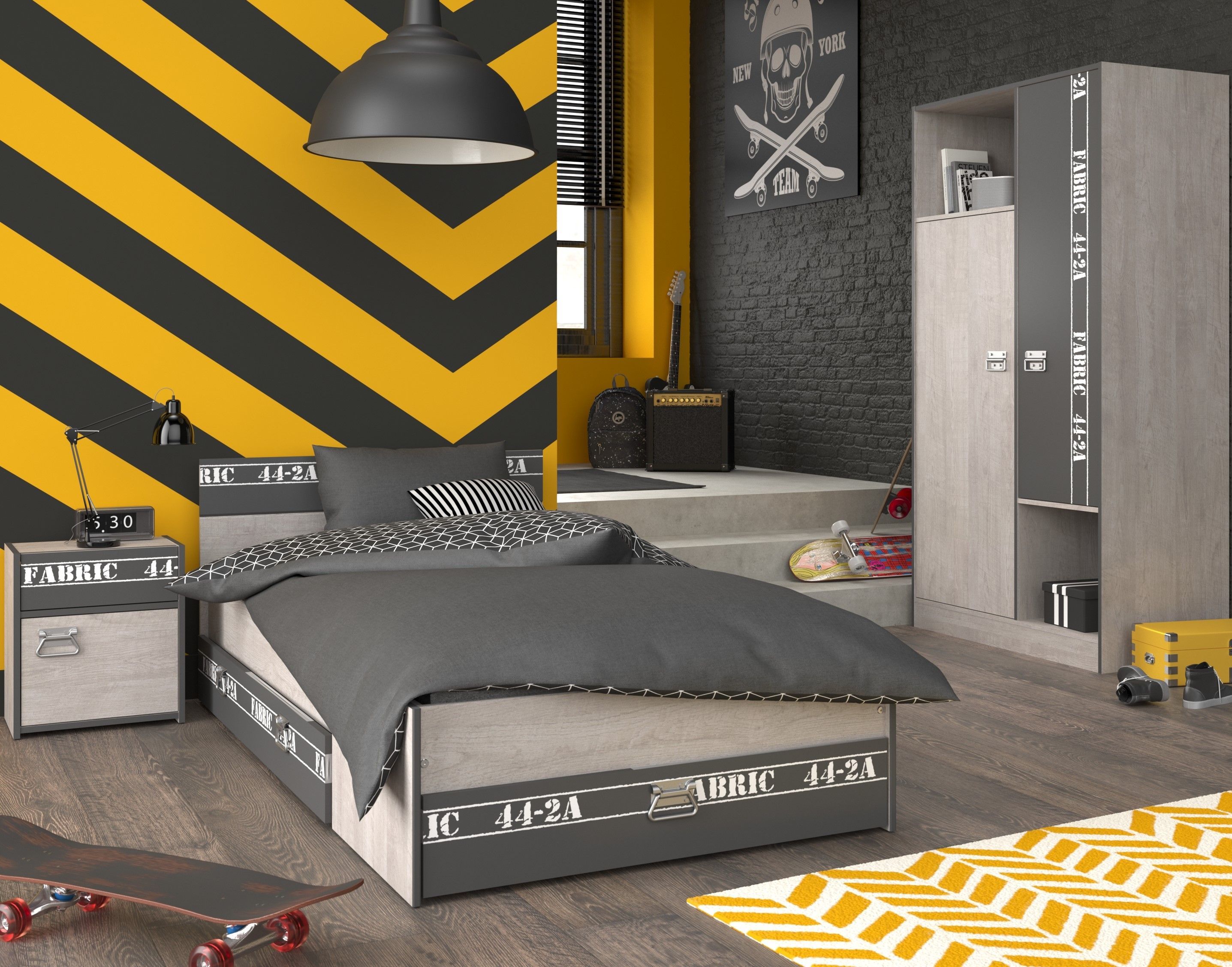 Parisot Parisot Fabric 2 Set Grau – Bett, Schrank, Nachttisch 99x200
