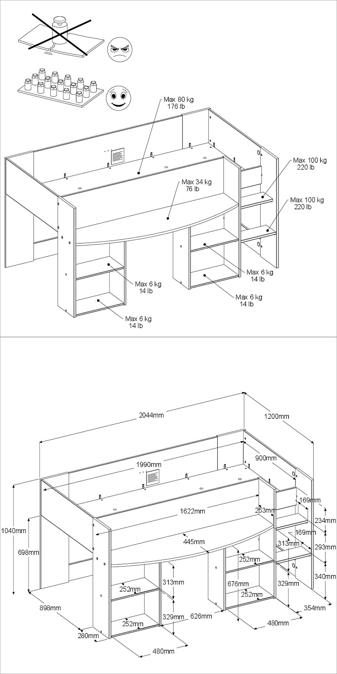 Parisot Parisot Pirouette 1 Hochbett Weiß/Grau oder Rosa 90x200