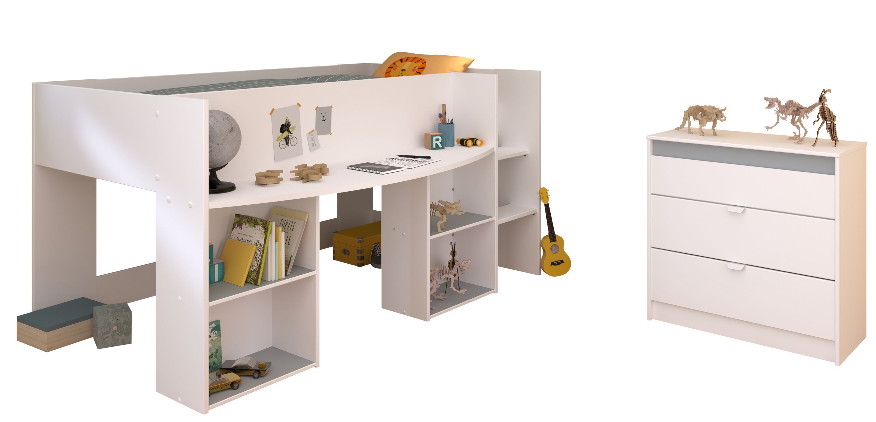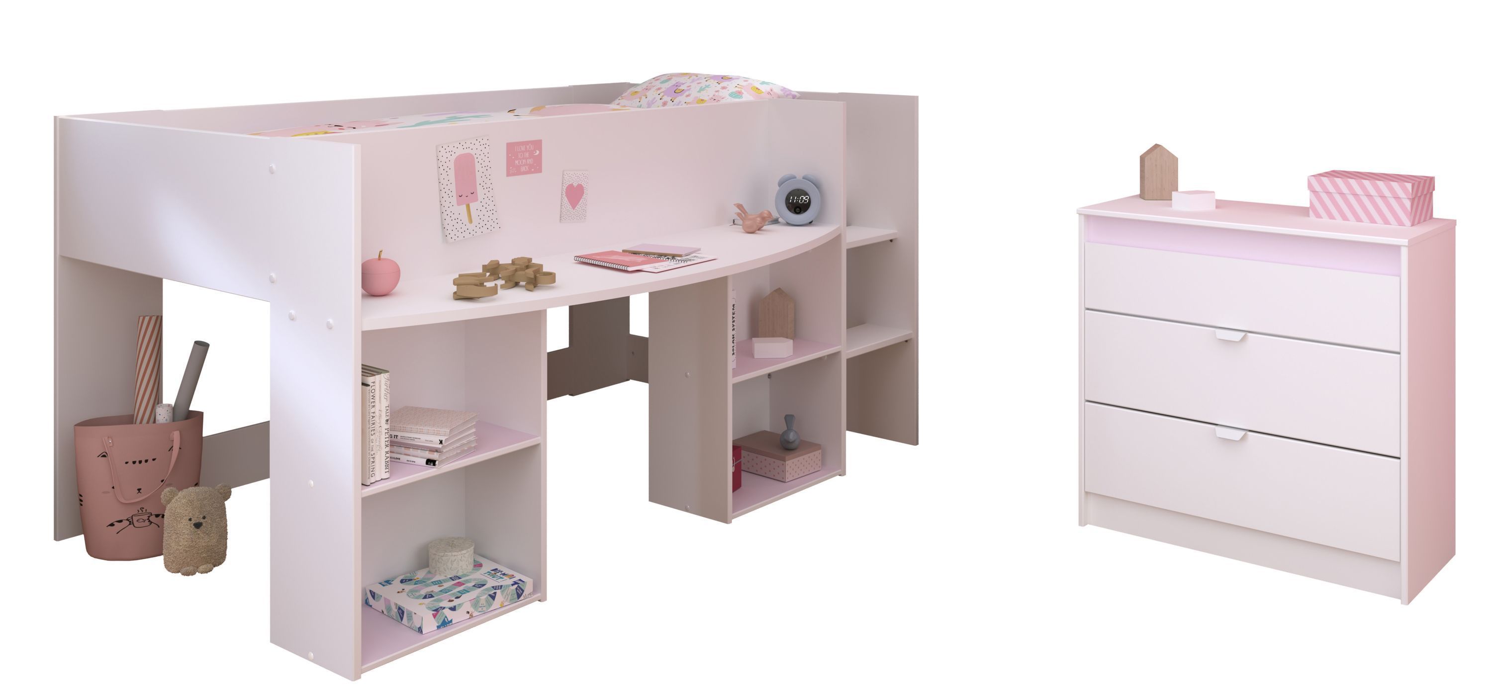 Parisot Parisot Pirouette 16 Set Weiß – Bett & Kommode, Grau/Rosa