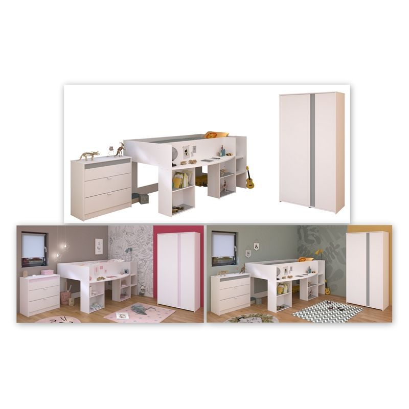Parisot Parisot Pirouette12 Set 3-tlg. – Hochbett, Weiß/Grau/Rosa