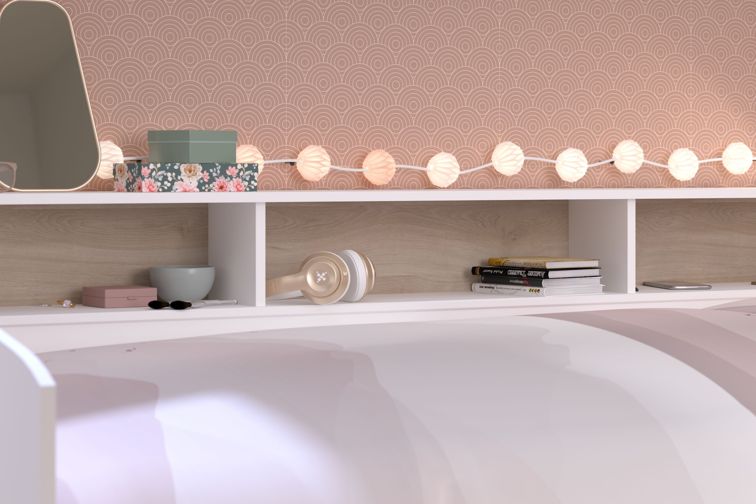 Parisot Sleep 44 Kinder/ Jugendzimmerbett, Tisch, Kommode weiß/ Eiche 90x200