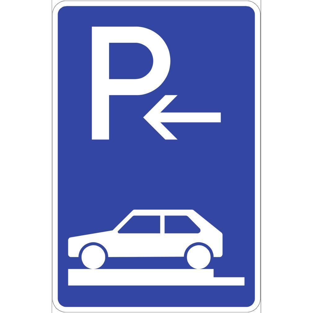 Parken ganz auf Gehwegen quer links (Ende), Symbolschild, StVO