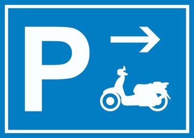 • Motorroller Parkplatz mit Richtungspfeil rechts Schild waagerecht