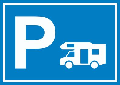 • Wohnmobil Parkplatz Schild mit Richtungspfeil rechts waagerecht