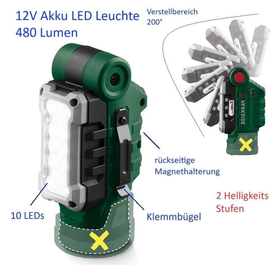 Parkside 12V LED Akku Leuchte Werkstattleuchte Solo Gerät ohne Akku DHL Päckchen