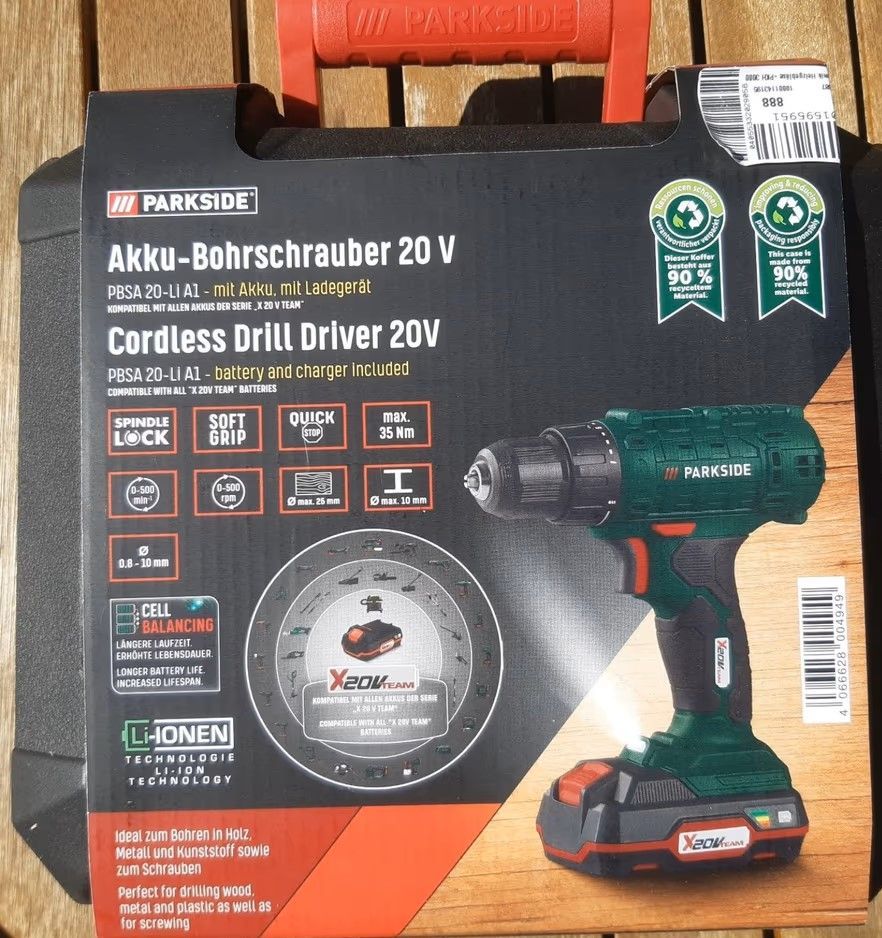 Parkside PARKSIDE® 20 V Akku-Bohrschrauber »PBSA 20« 35 Nm mit Akku und Ladegerät
