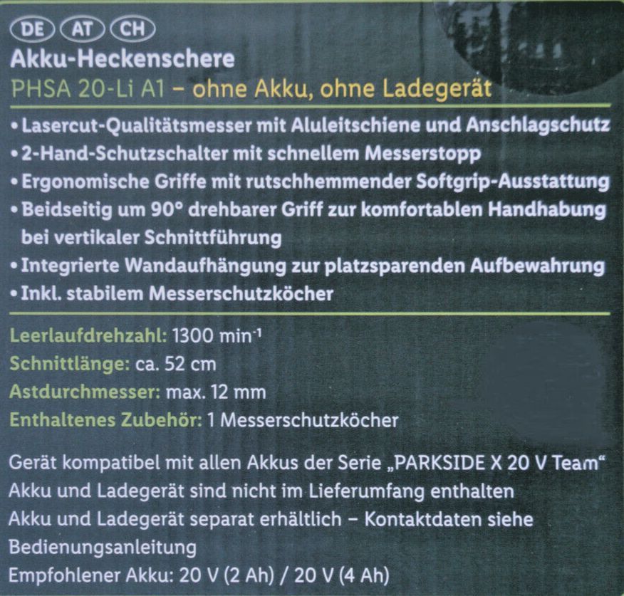 Parkside Parkside 20V Akku Heckenschere Heckentrimmer Strauchschere Heckenschneider