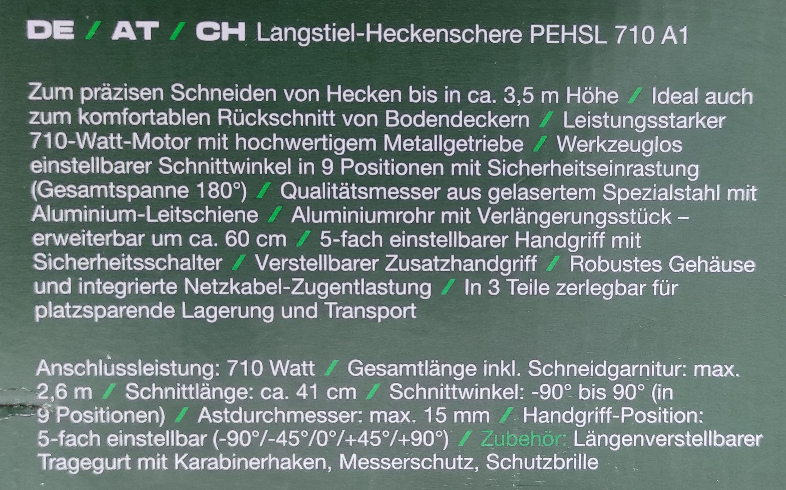 Ausstellungsstücke , neu Verpackung kann geöffnet leicht beschädigt sein. Lieferung direkt in Originalverpackung. Zum präzisen Schneiden von Hecken bis in ca. 3,5 m Höhe Ideal auch zum komfortablen Rückschnitt von Bodendeckern Leistungsstarker 710-Watt-Motor mit hochwertigem Metallgetriebe Werkzeugl... Mehr
