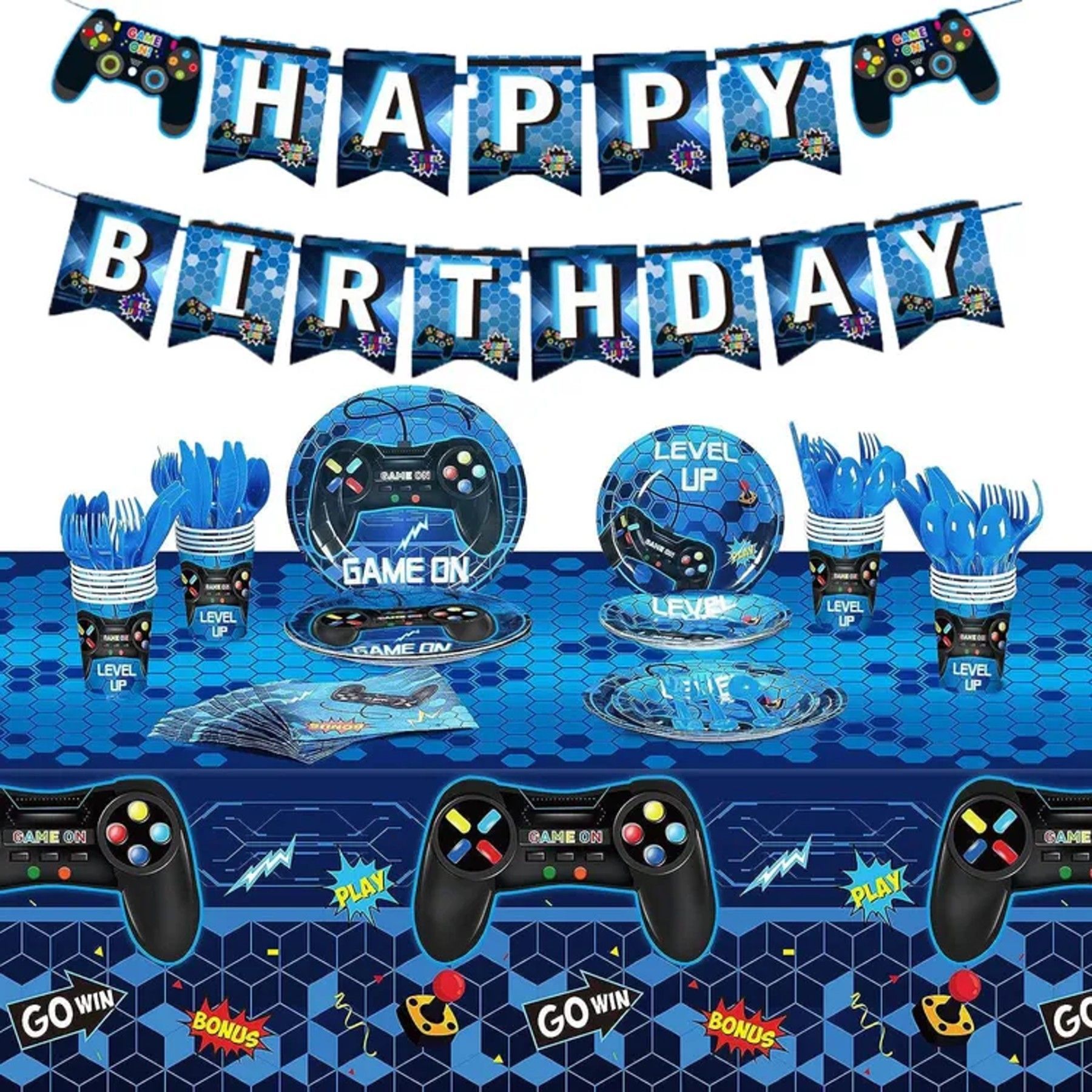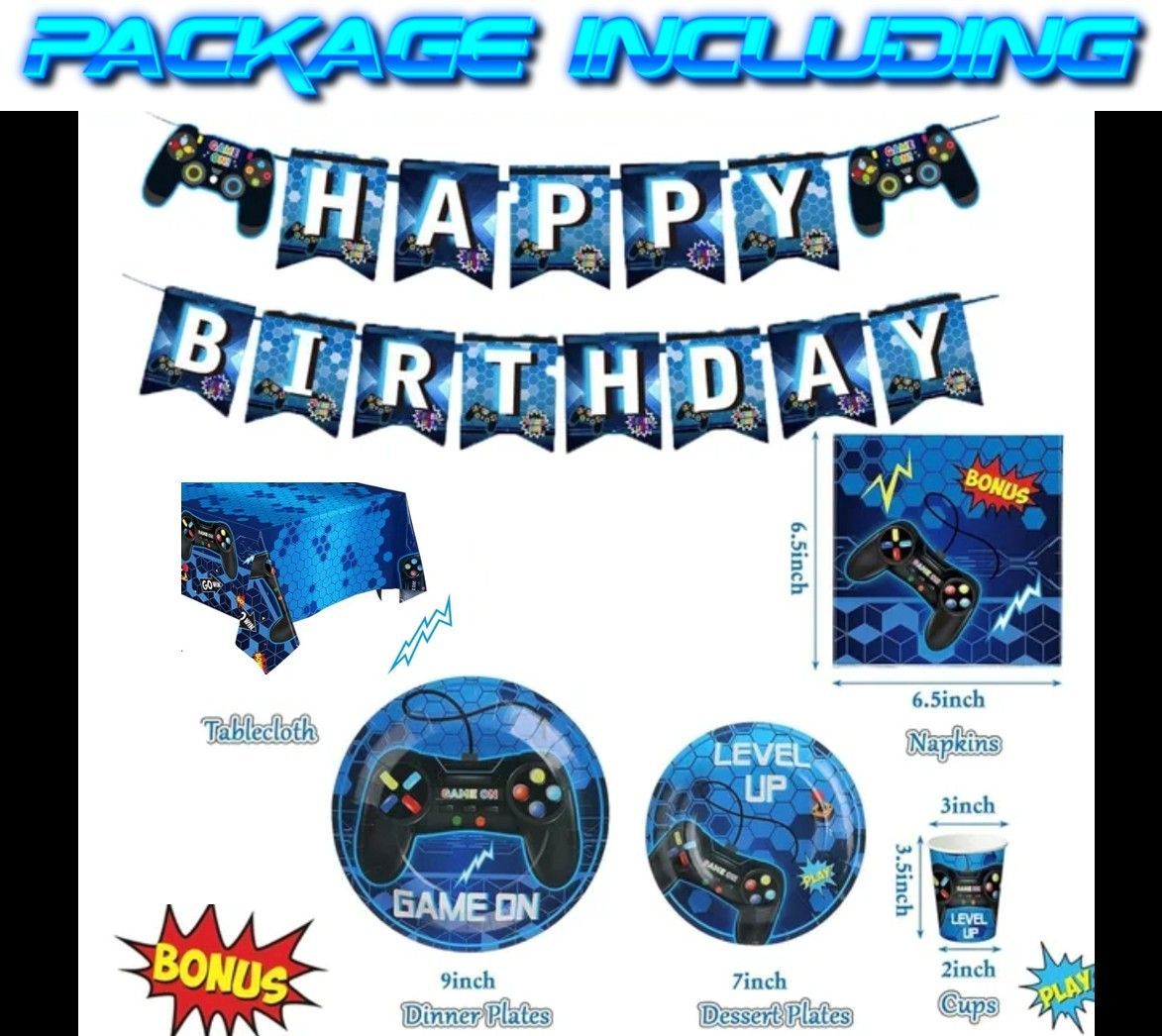 Party Set Gaming Gamer Partygeschirr Teller Becher Geburtstag passend für 10 Gäste