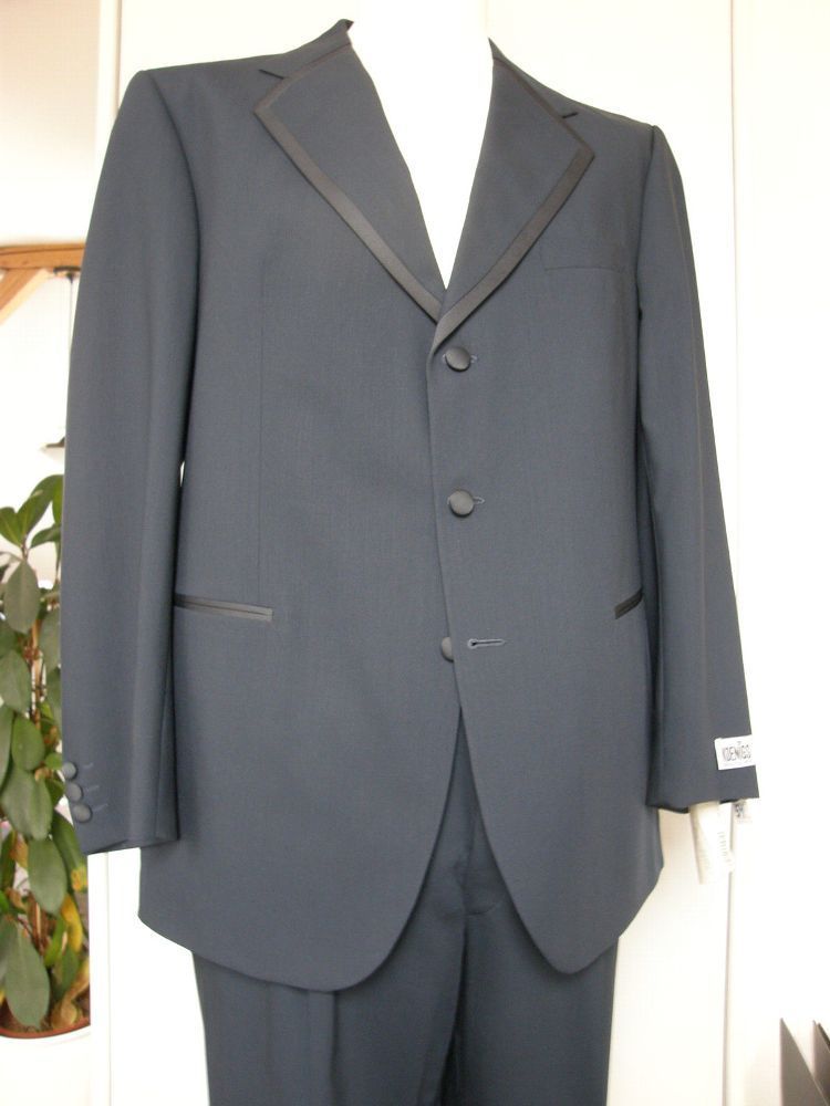 Partyanzug Koenigs!! Sie erwerben hier einen perfekten einreihigen, 3 Knopf Partyanzug, gefertigt aus reiner Schurwolle in der Größe 26. Der Anzug hat eine sehr elegante Seidenapplikation in der Kragenkante, sowie mit Seide paspelierte Tascheneingriffe. Sie wollen heiratenEuro Hier haben Sie das pas