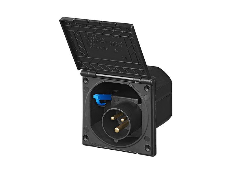 Pat CEE-Einspeisestecker Einspeisesteckdose Außensteckdose schwarz Zugentlastung
