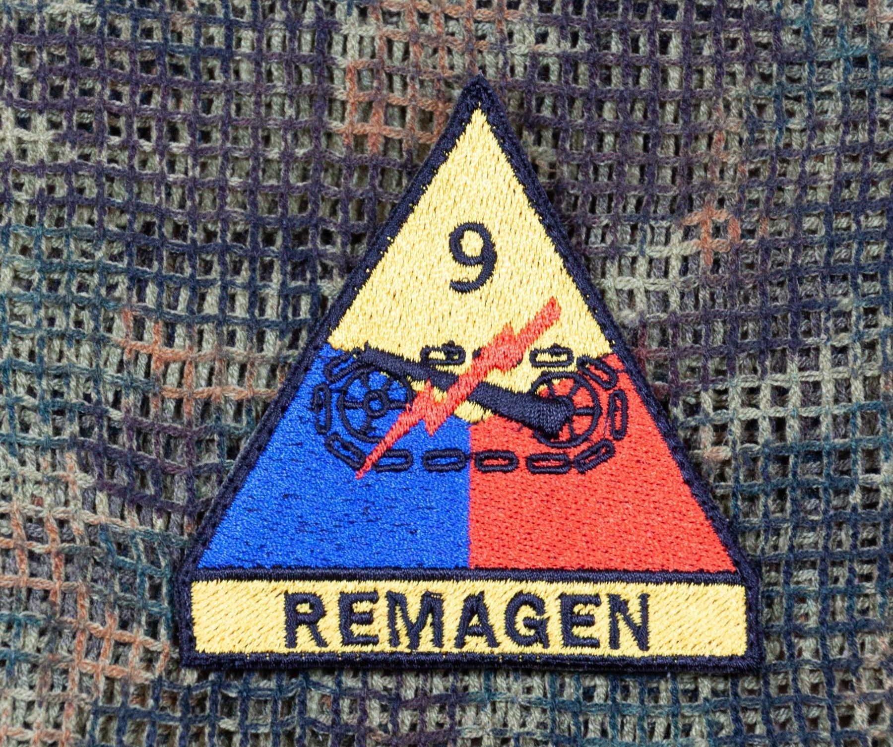 Dieser gestickte Patch mit dem Abzeichen der 9th Armored Division (Remagen) gibt es zum Aufnähen ohne Klett oder auch mit Klettrückseite. Die Maße betragen: Breite: 8 cm, Höhe: 8 cm.