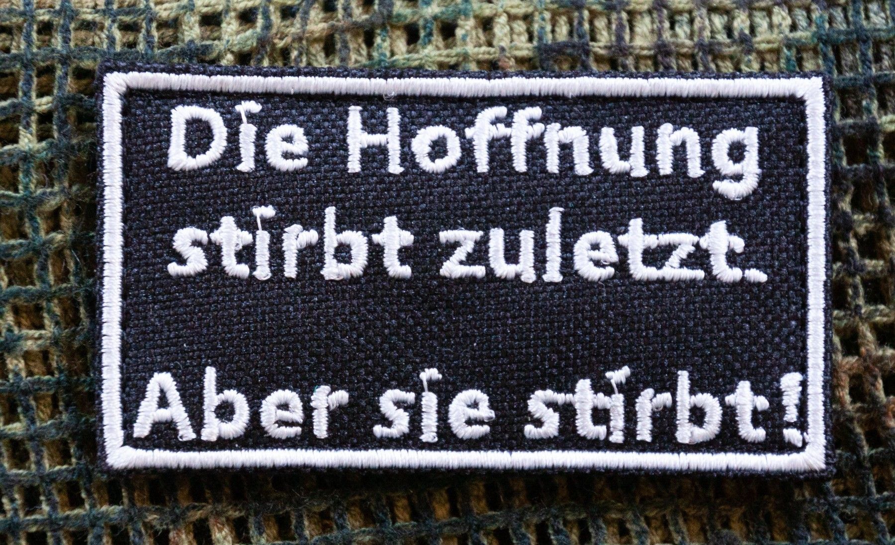 Patch: "Die Hoffnung stirbt zuletzt. Aber sie stirbt!" (mehrere Varianten)