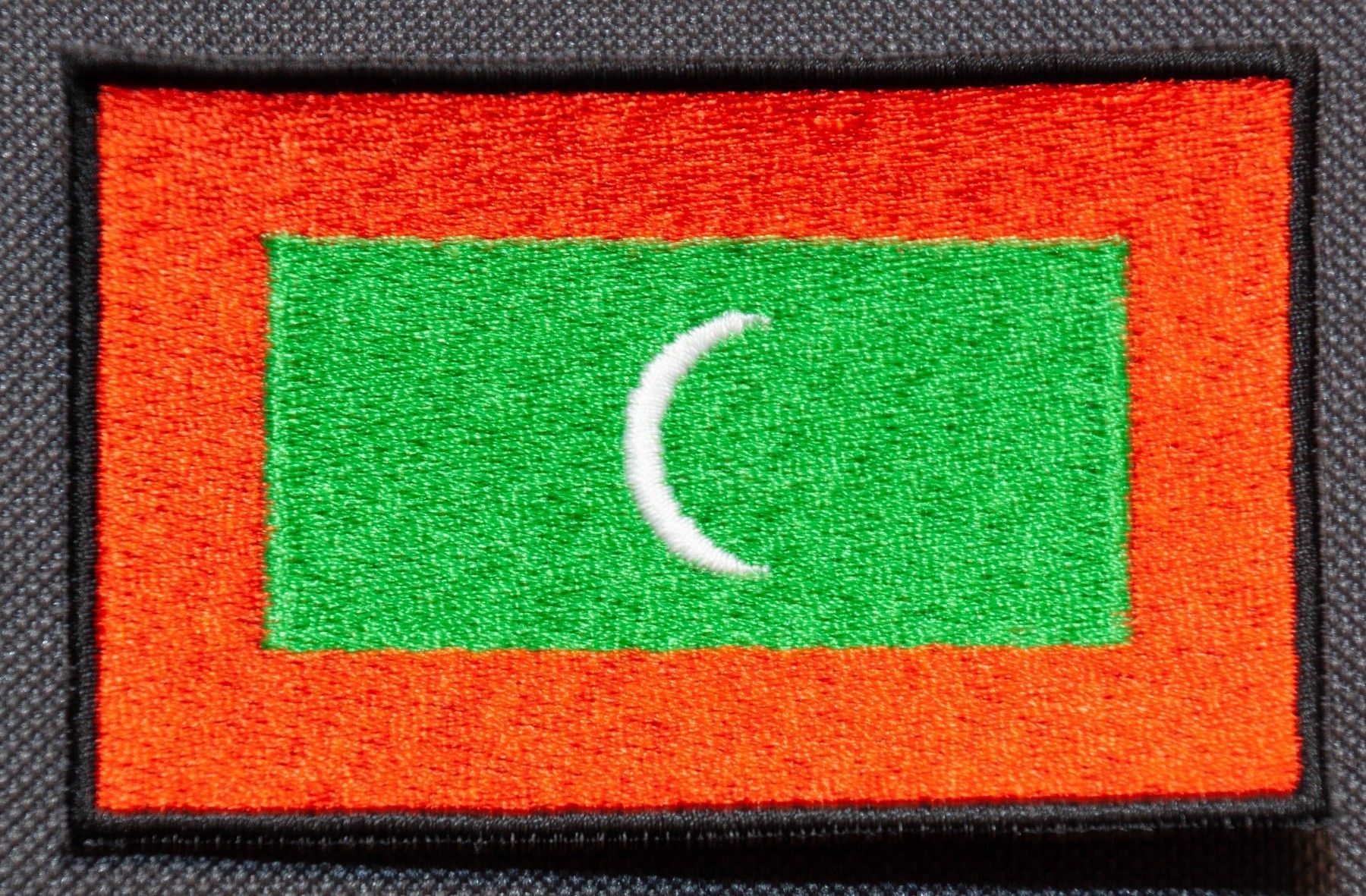 Hochwertiger Patch mit der Nationalflaggen von Malediven. Den Patch gibt es wahlweise mit oder ohne Klettrückseite. Die Maße betragen ca.: Breite: 8 cm, Höhe 5 cm.