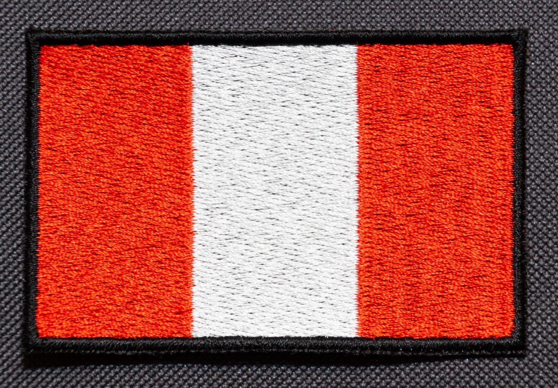 Hochwertiger Patch mit der Nationalflaggen von Peru. Den Patch gibt es wahlweise mit oder ohne Klettrückseite. Die Maße betragen ca.: Breite: 8 cm, Höhe 5 cm.