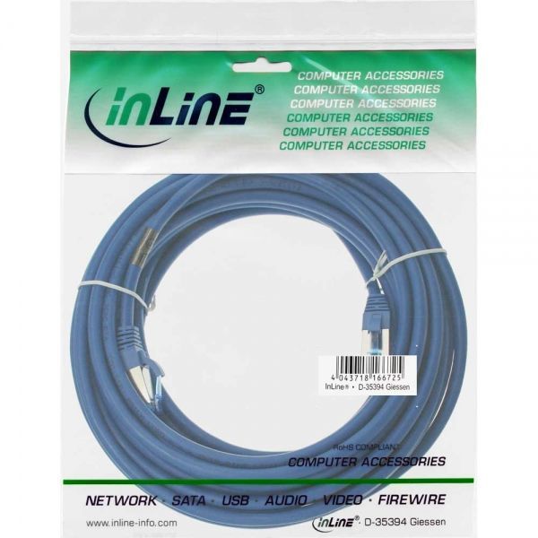 InLine® Patchkabel, S/FTP (PiMf), Cat.6A, 500MHz, halogenfrei, Kupfer, blau, 7,5m, blau