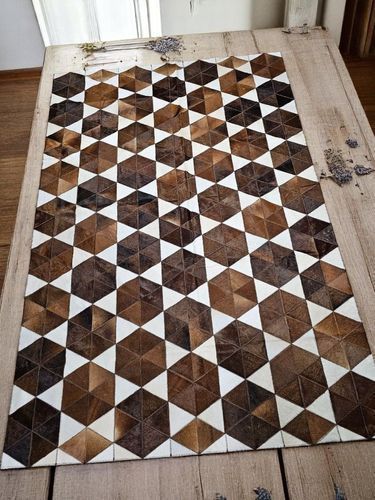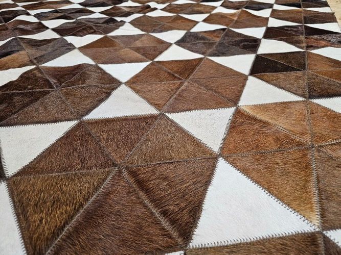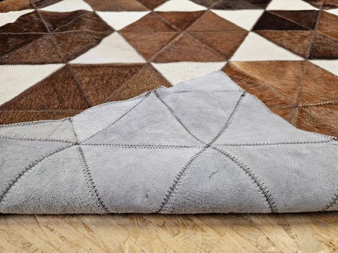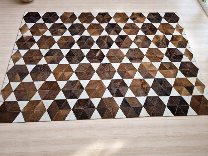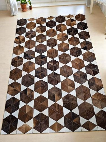 Patchwork Kuhfell Teppich mit Hexagonmuster