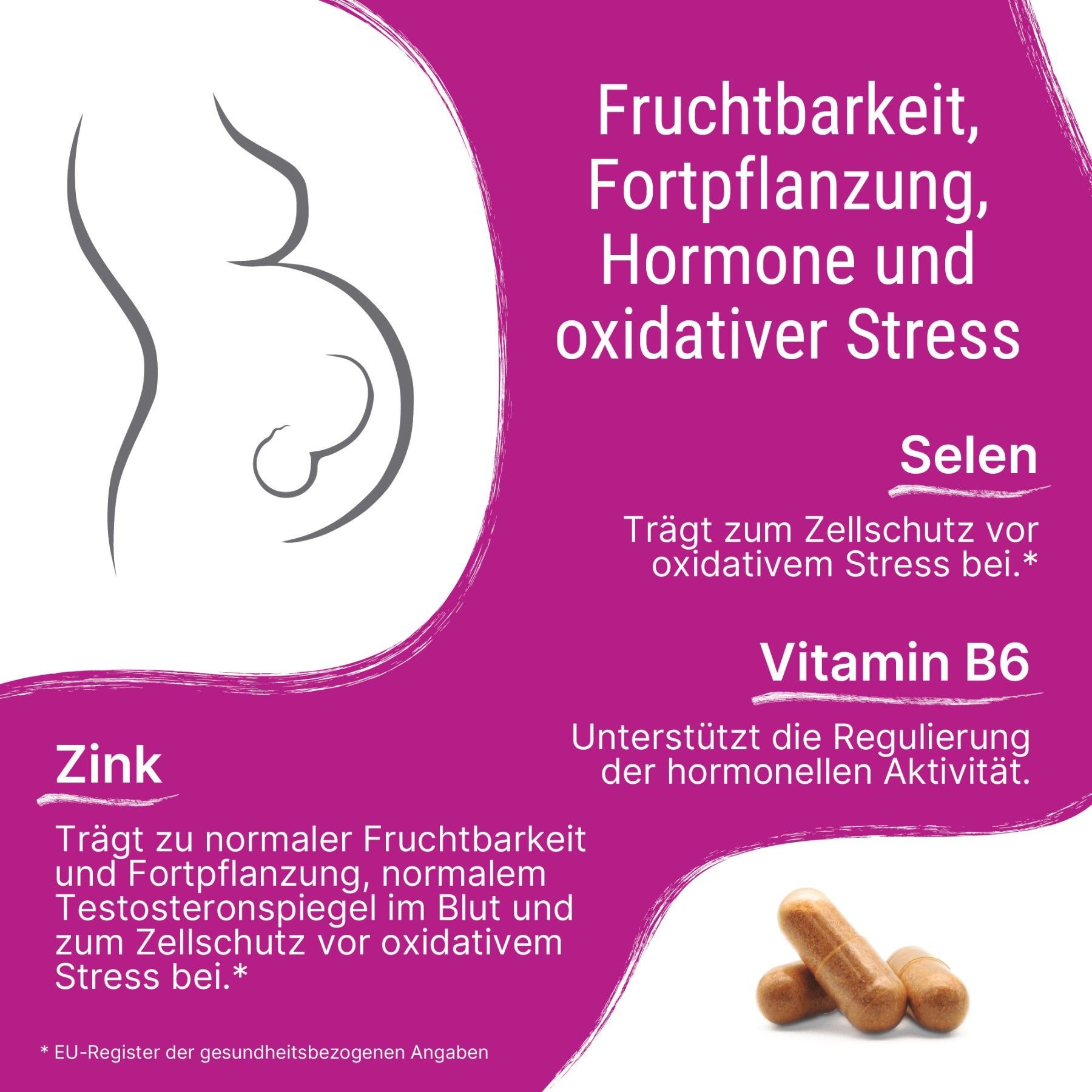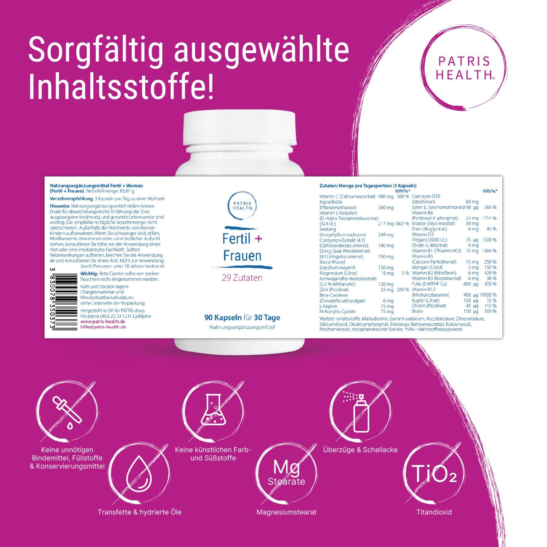 Patris Health® Fertil + Frauen - Zink, B6, Selen & Pflanzenextrakte für Fruchtbarkeit