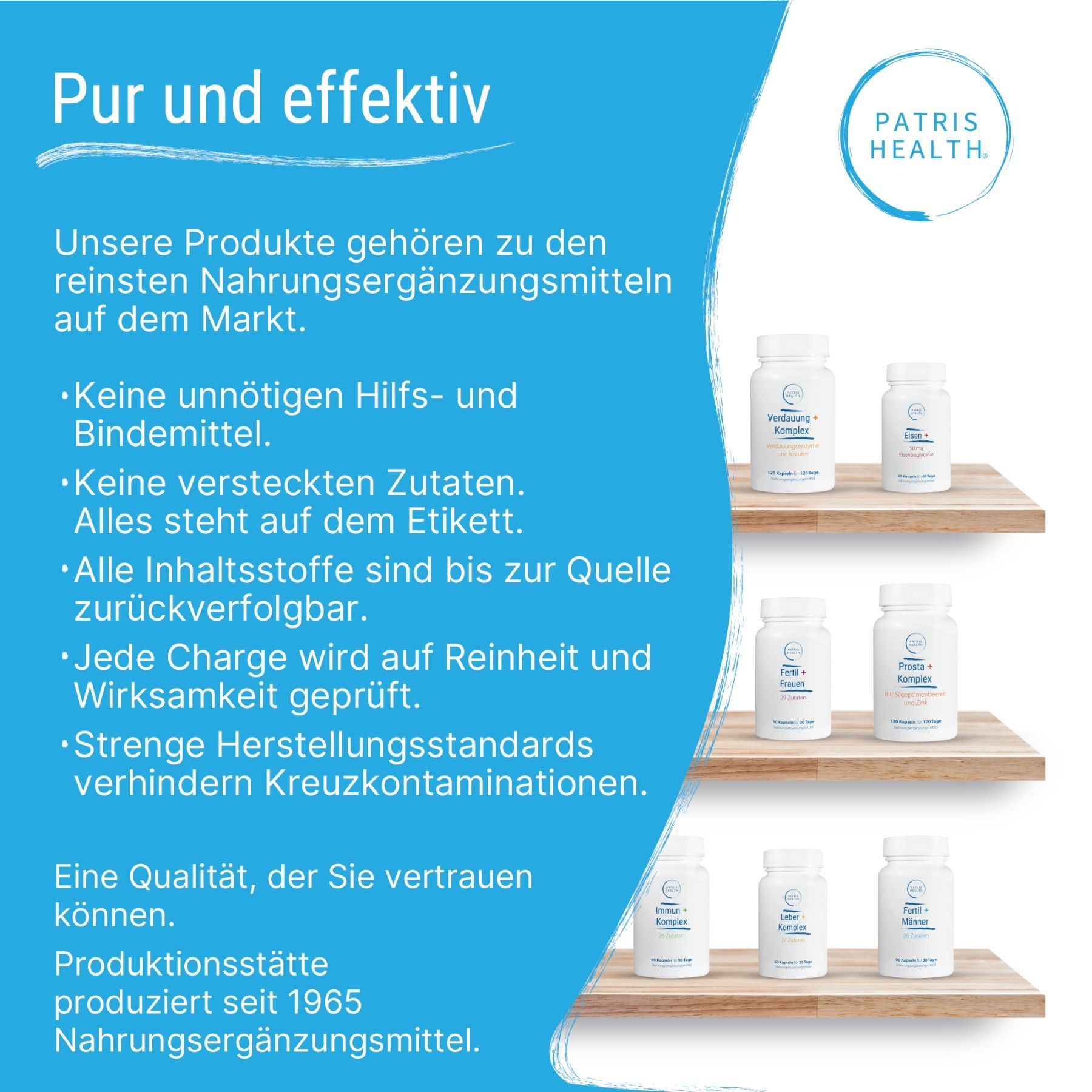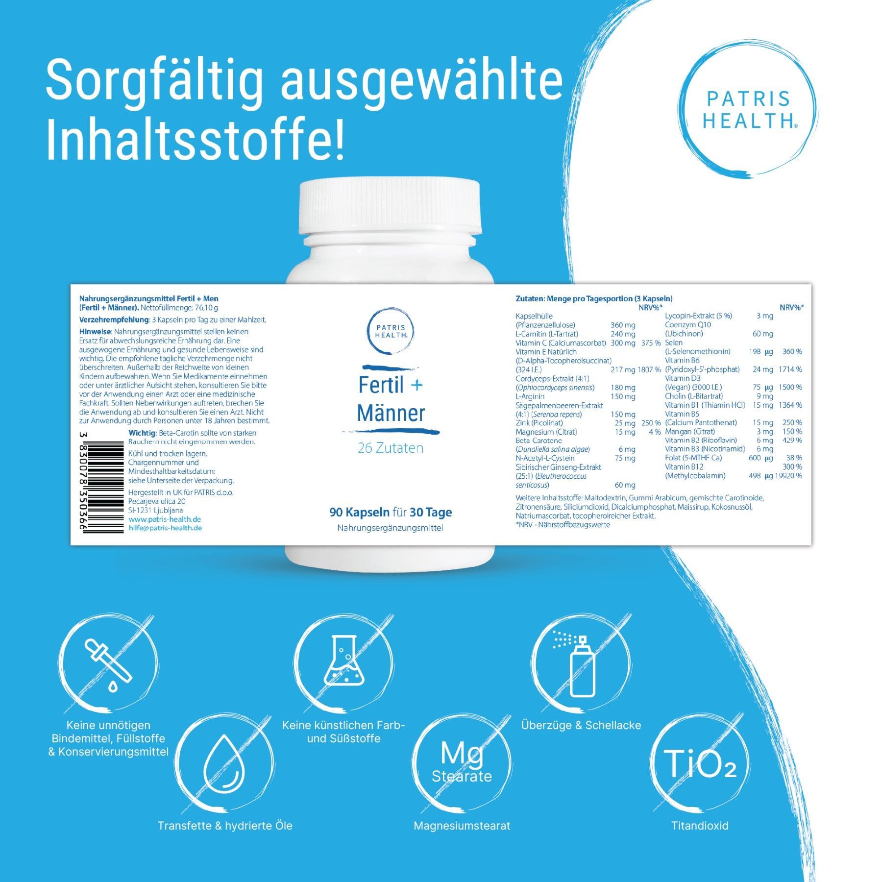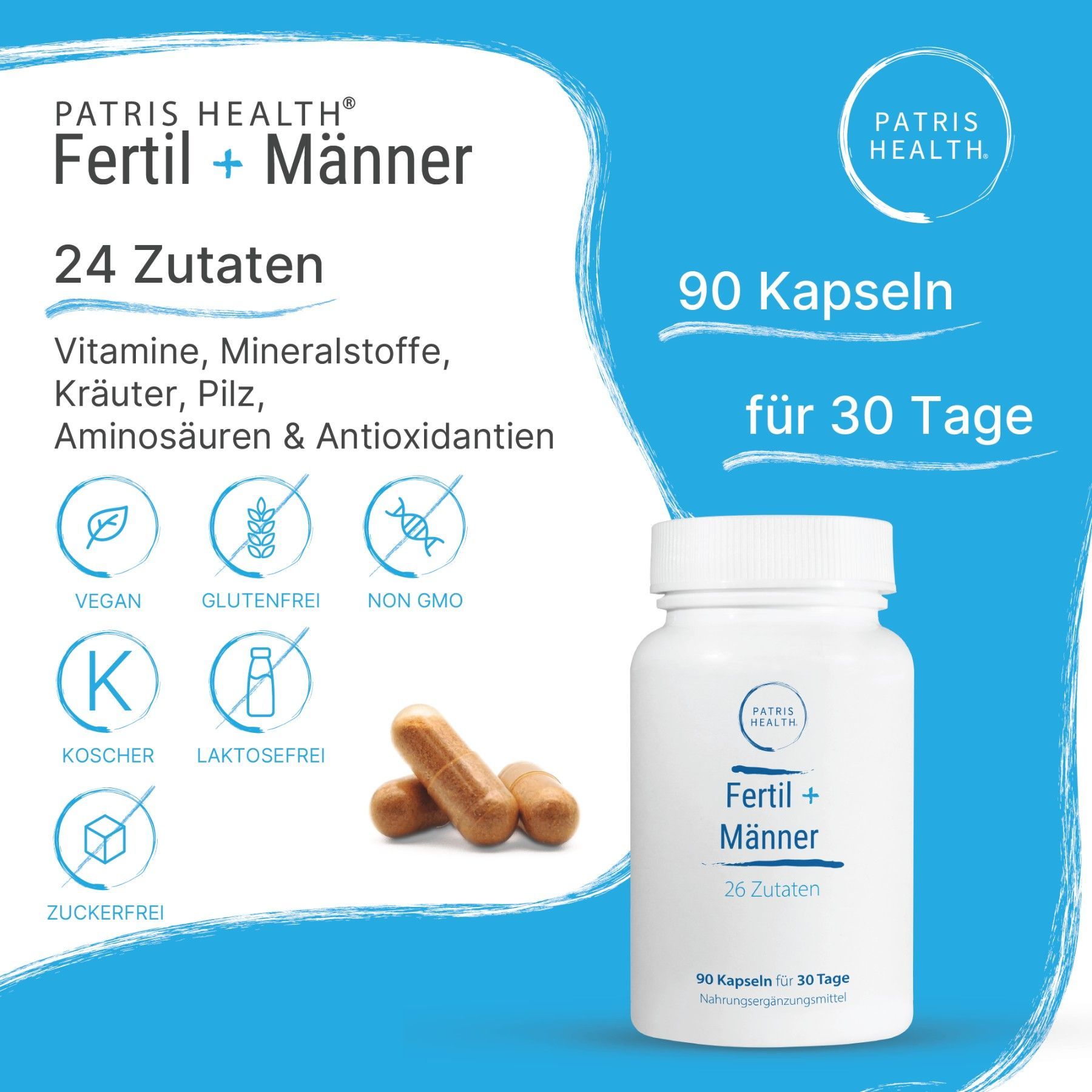 Patris Health® Fertil+ Männer - Für Fruchtbarkeit, 24 Inhaltsstoffe, 90 Kapseln
