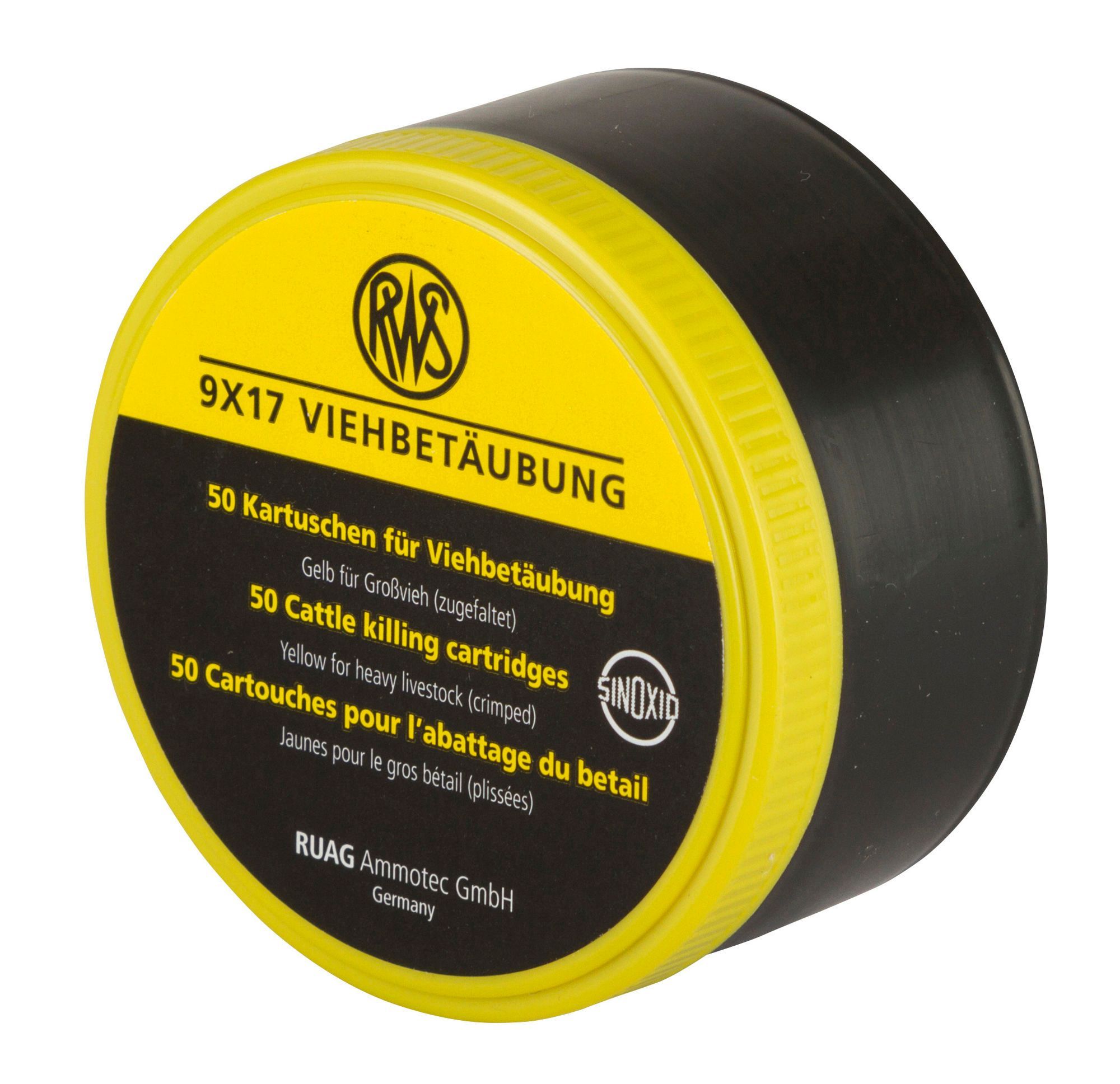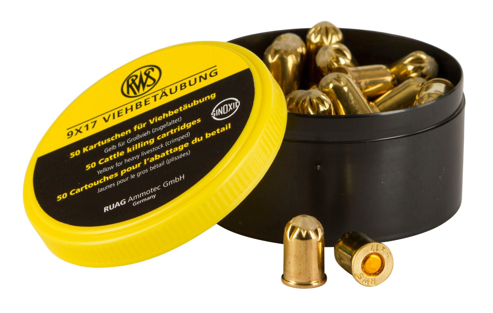 Kerbl Patronen gelb f. Schussapparat 50 Stück für mittlere Tiere Schafe Kaliber 9x17mm