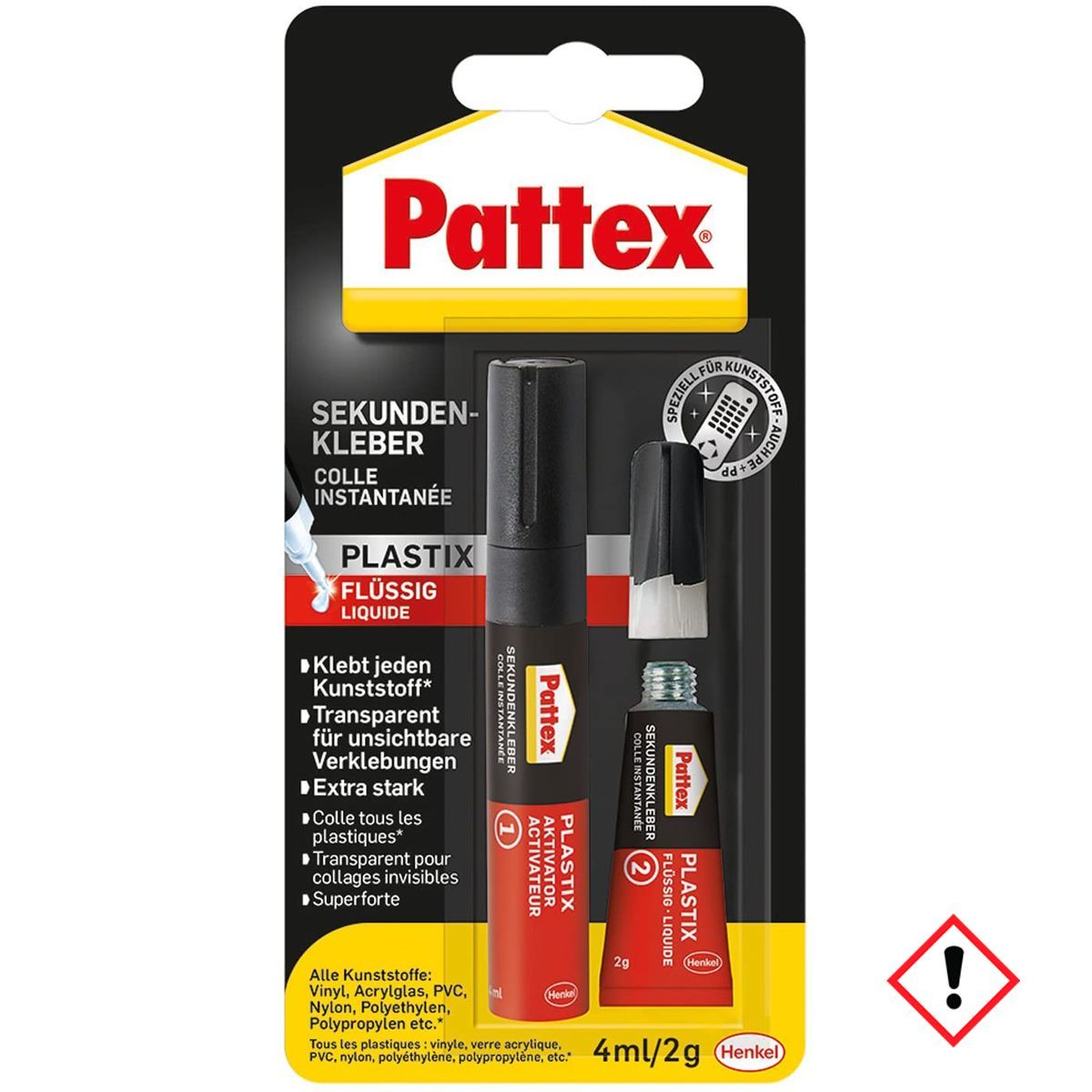 Pattex Sekundenkleber Plastik Speziell für Kunststoffe 4ml 2g