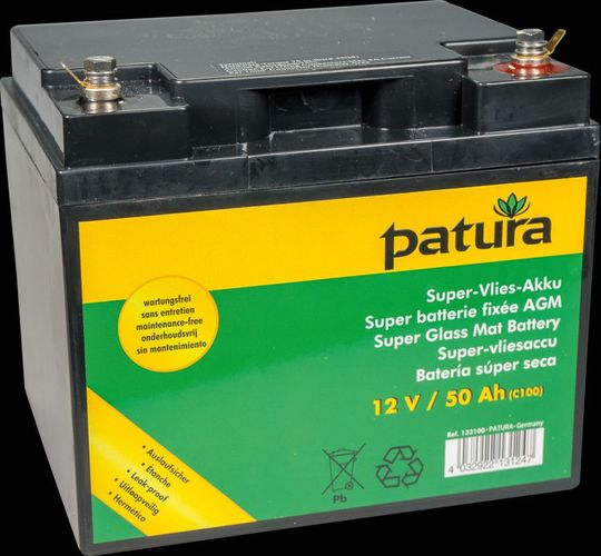 Patura PATURA Vlies-Akku für 12 Volt Akkugeräte 50 AH Weidezaunbatterie Weidezaun