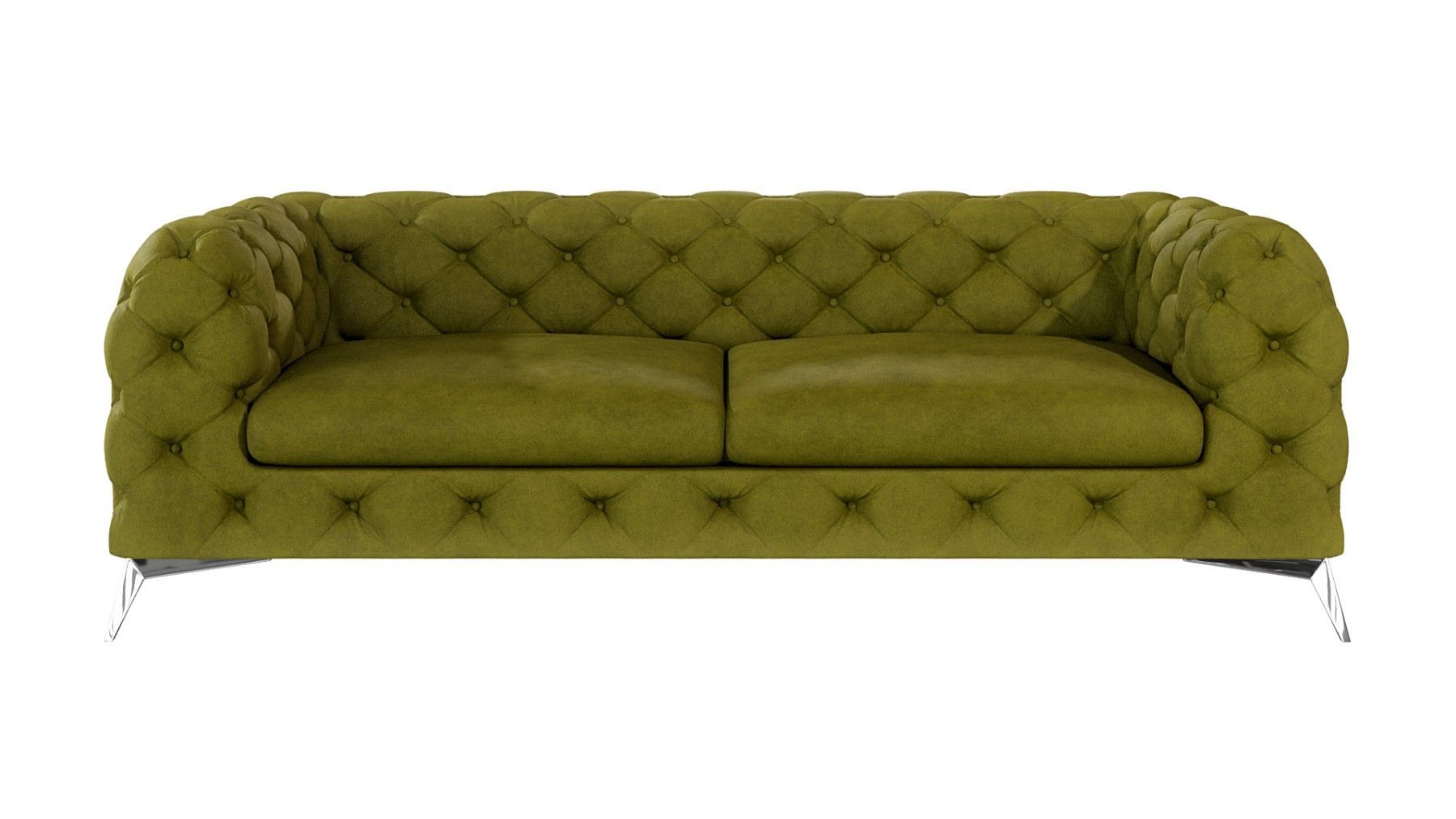 Paul - Chesterfield Sofa 3-Sitzer mit Silber Metall Füßen