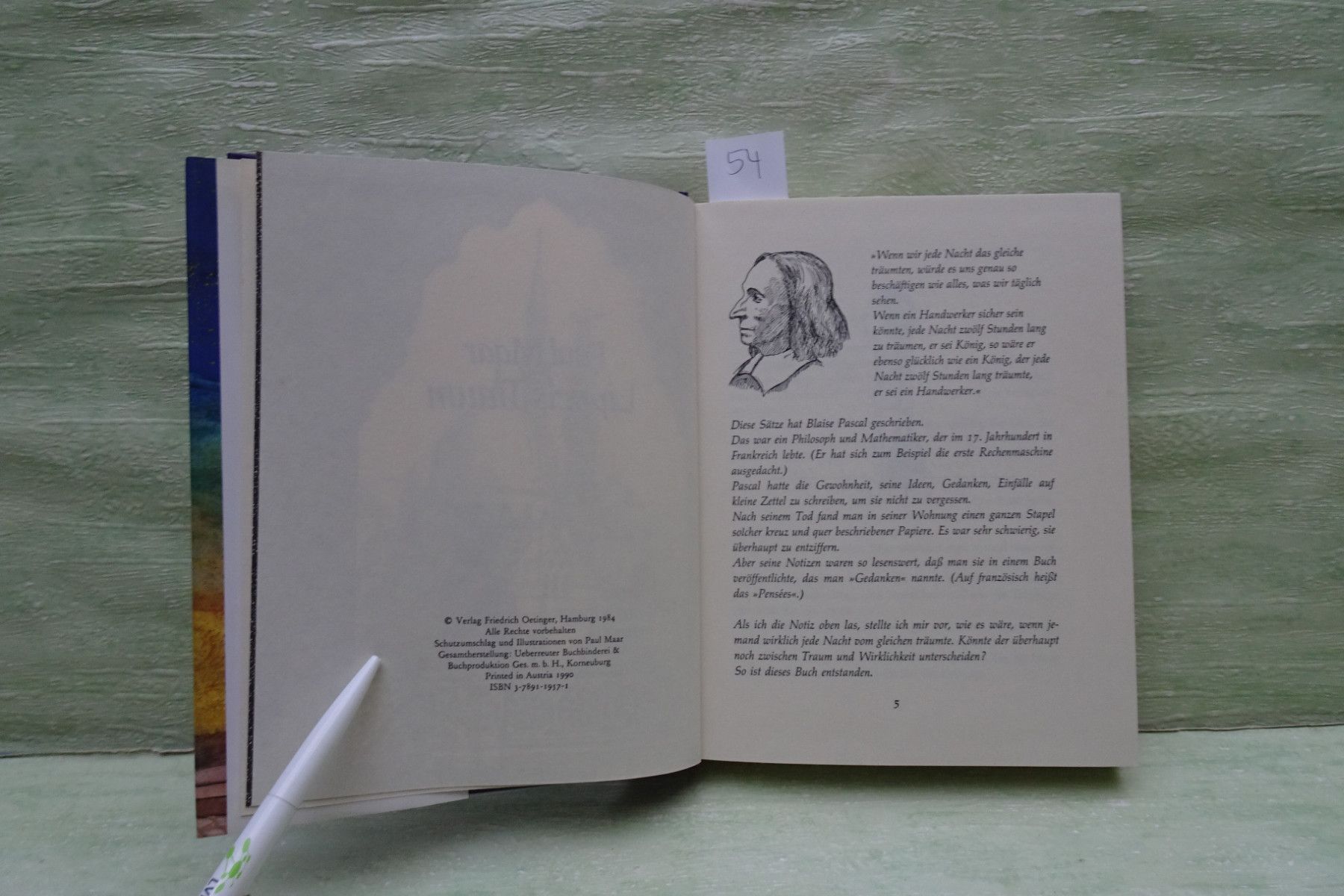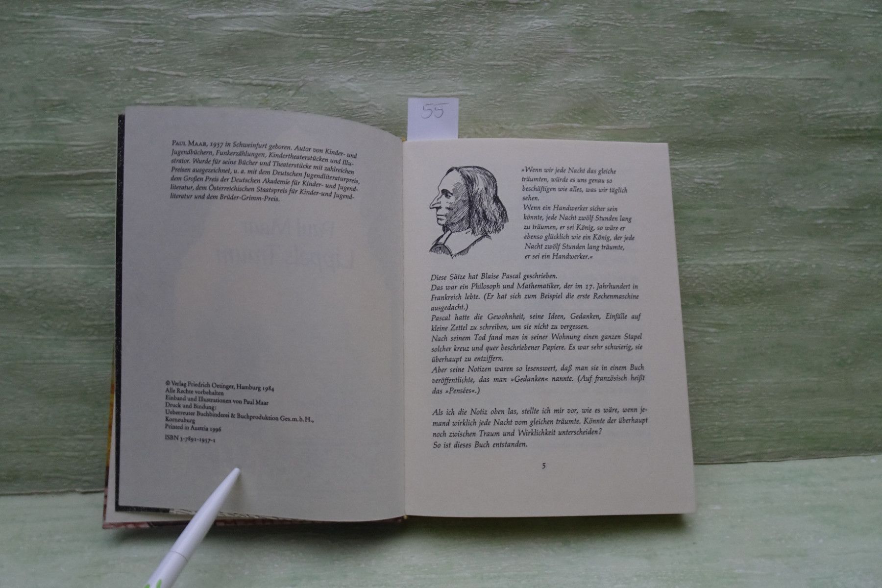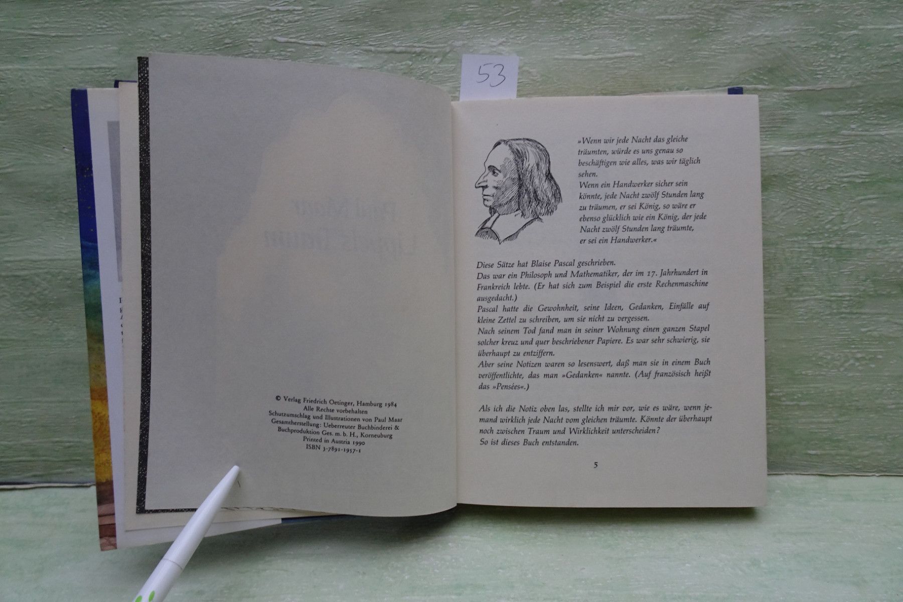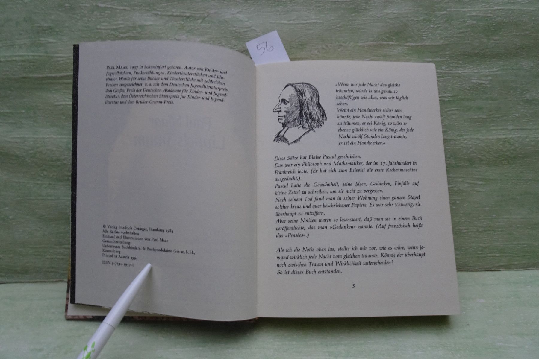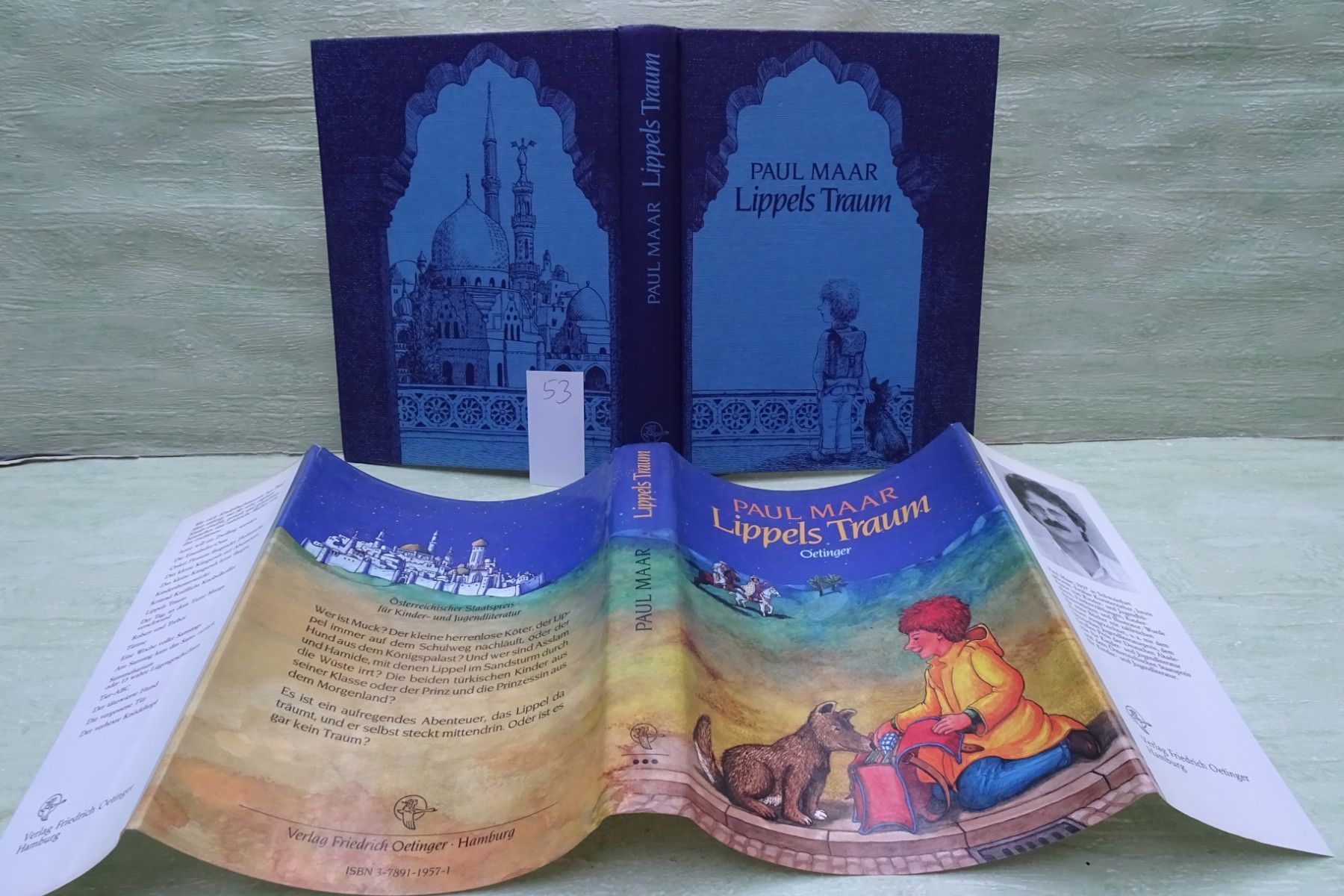 Jugend- & Kinderbücher ... Erinnerungen ..... Paul Maar . Lippels Traum österreichischer Staatspreis für Kinder- und Jugendliteratur . Friedrich Oetinger , Hamburg Großdruckschrift . . Abkürzungen: Buchschnitt : BS fleckig Buchecken : BE geknickt Buchrücken : BR beschädigt Seiten : S Fadenbindun